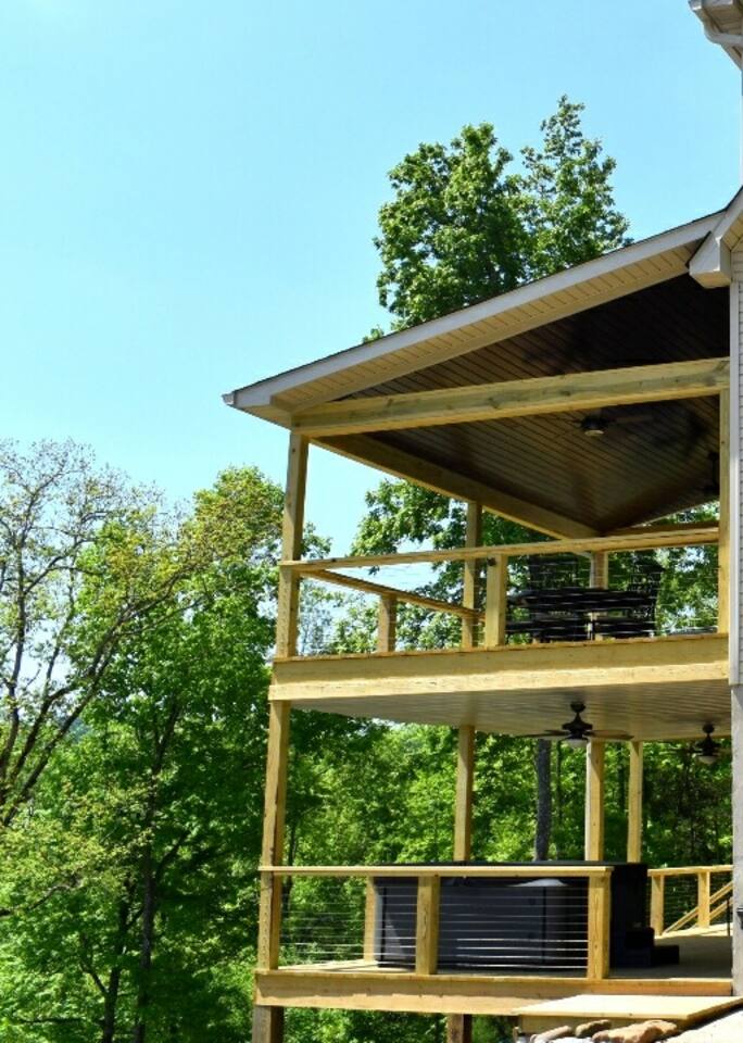 Lakefront home with a private dock with one covered slip for your family to get away on beautiful Norris Lake! The property is a 3 bedroom / 3.5 bath home that has a hot tub, ping pong & pool table, foosball, WIFI, & smart TV's throughout the home with two porches to overlook pristine Norris Lake. The home is minutes away from Beach Island Marina & Bubba Brews (5 min drive). There are 103 steps from the lower deck to the dock & the tram on the property is out neighbors & not for renters use!