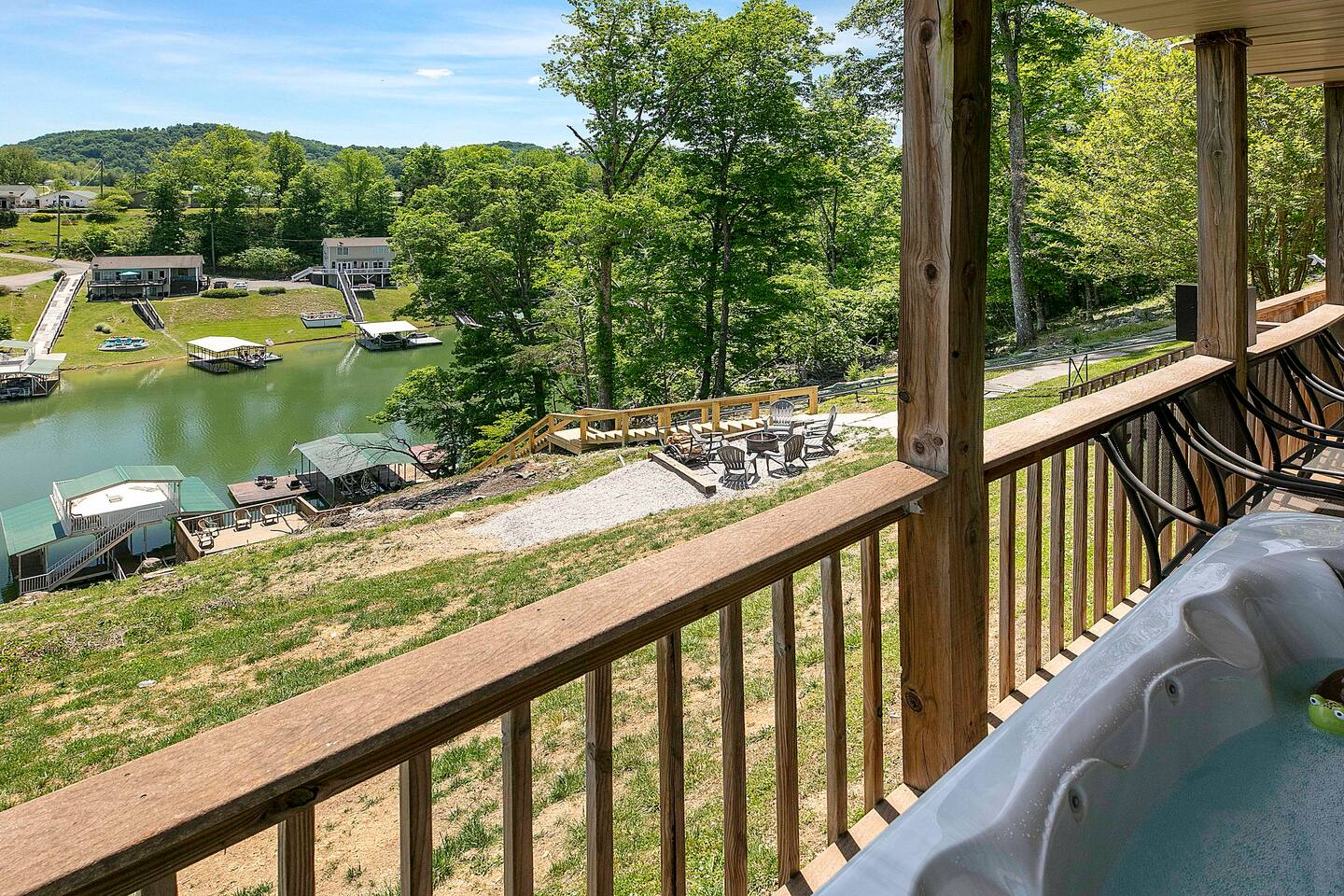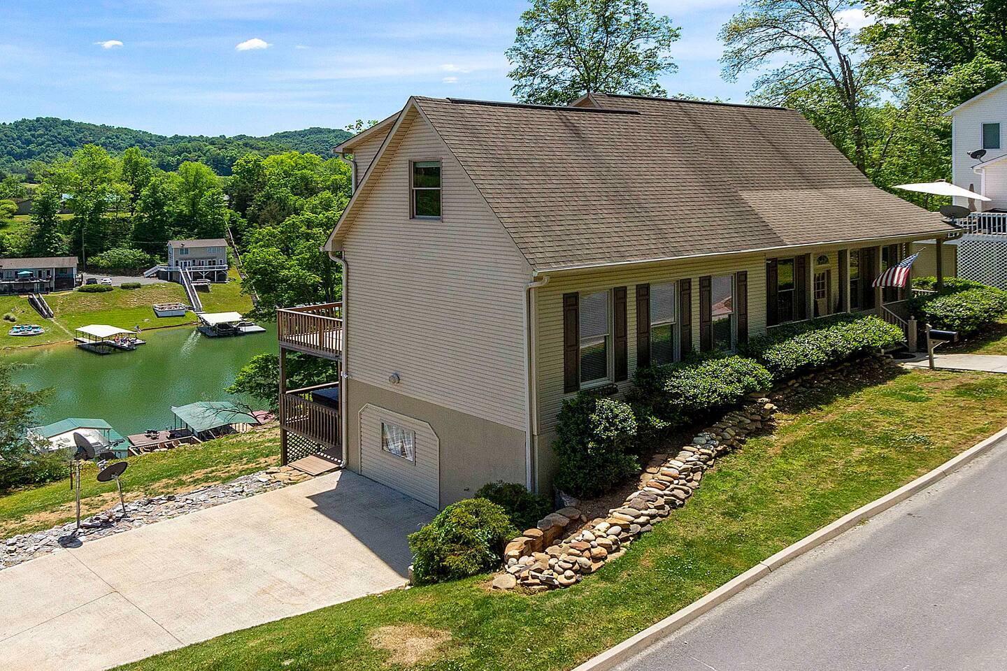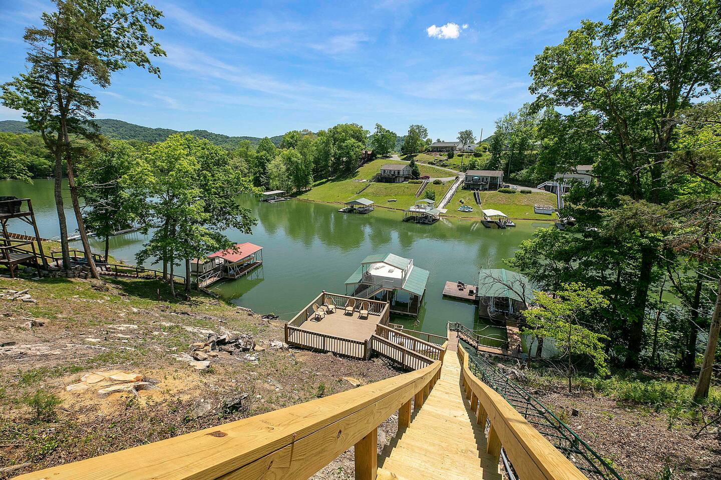 -Check in is at 5 & Check out is at 10 & you must be 25 to rent -House includes All Linens, bath towels, pots, pans, utensils, baking sheets, etc. -A STARTER supply of dish soap, dishwasher pods, paper towels, a roll of toilet paper per bathroom, & trash bags (indoor & outdoor) -Recommended items to bring: Extra trash bags, paper products, soaps, detergents, toilet paper, beach towels for hot tubs or lake, & all personal soaps, shampoo, & conditioners. -3 Car MAX limit as this property shares a steep driveway with our other property there. -No smoking or parties allowed anywhere on the property. -We provide all firewood & propane tanks. -There are outdoor security cameras for protection since this is a year round rental. -Check in and out times are firm unless approved in advance. -Nearest grocery store is Food City which is 10 minutes away. -No pets are allowed at our properties -Indoor Fireplace is for owners use only -Please note that there is one slip available for guest use. We keep our pontoon rental in the other slip as stated above. -There is no jumping off the upper level of the dock. There are steel cables that run underneath to keep the dock in place