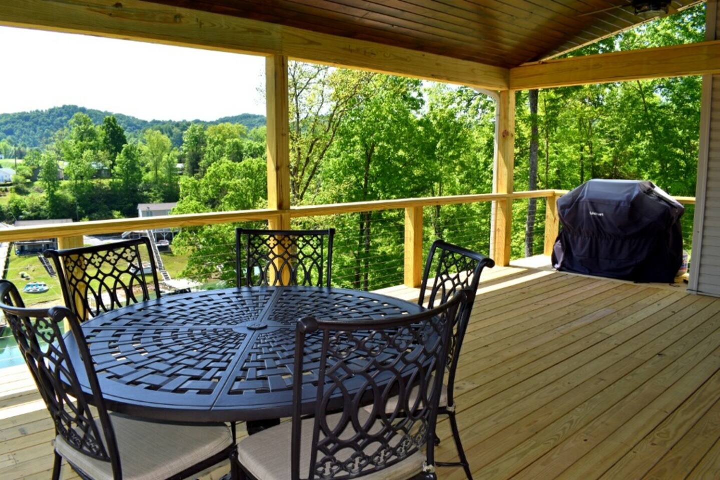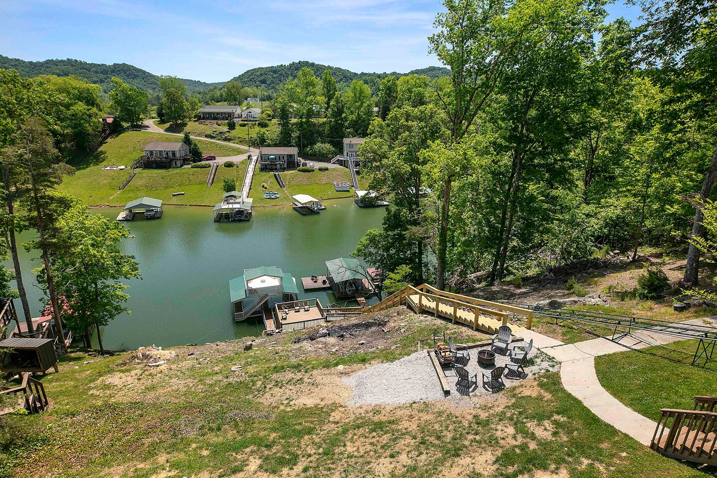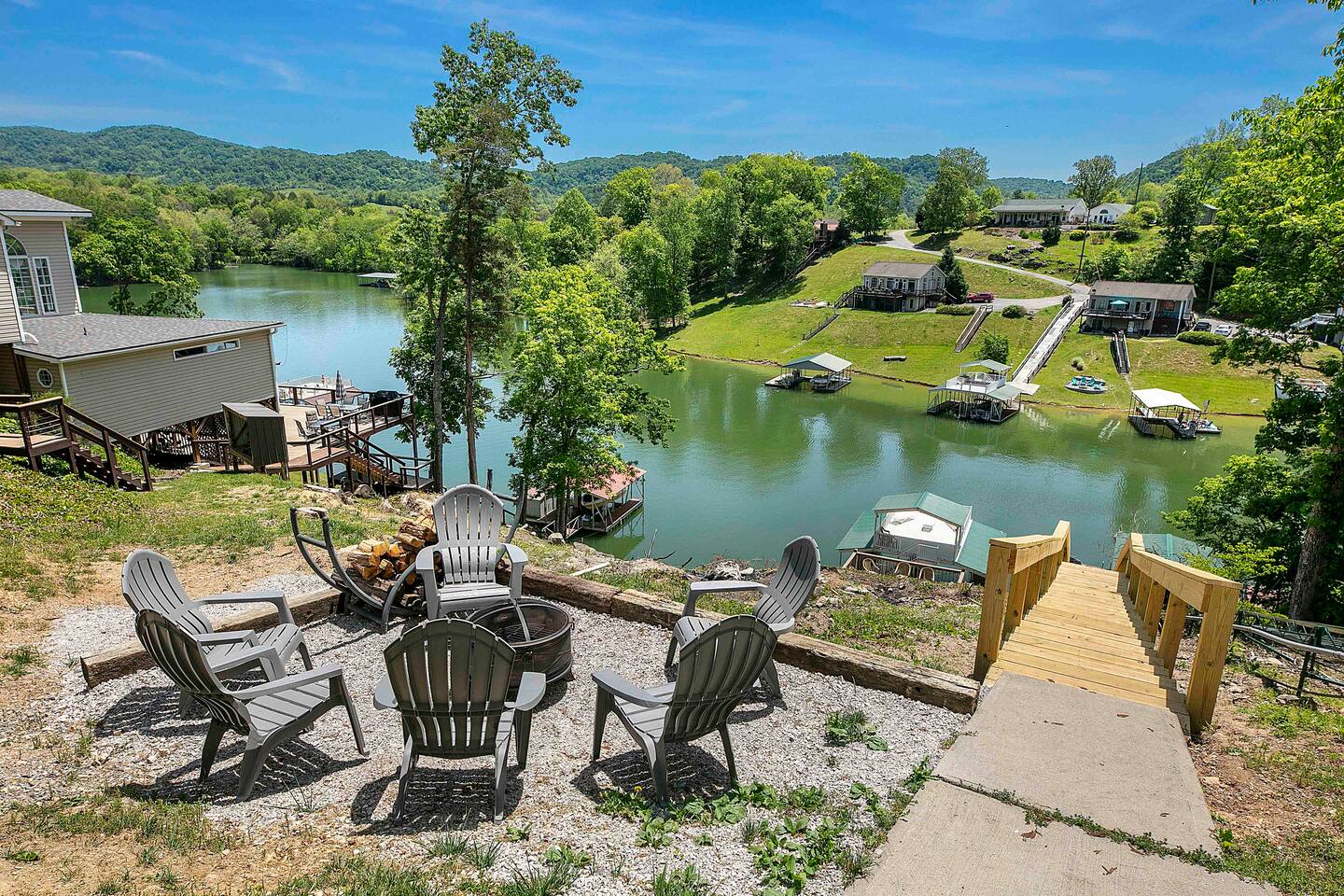 -Check in is at 5 & Check out is at 10 & you must be 25 to rent -House includes All Linens, bath towels, pots, pans, utensils, baking sheets, etc. -A STARTER supply of dish soap, dishwasher pods, paper towels, a roll of toilet paper per bathroom, & trash bags (indoor & outdoor) -Recommended items to bring: Extra trash bags, paper products, soaps, detergents, toilet paper, beach towels for hot tubs or lake, & all personal soaps, shampoo, & conditioners. -3 Car MAX limit as this property shares a steep driveway with our other property there. -No smoking or parties allowed anywhere on the property. -We provide all firewood & propane tanks. -There are outdoor security cameras for protection since this is a year round rental. -Check in and out times are firm unless approved in advance. -Nearest grocery store is Food City which is 10 minutes away. -No pets are allowed at our properties -Indoor Fireplace is for owners use only -Please note that there is one slip available for guest use. We keep our pontoon rental in the other slip as stated above. -There is no jumping off the upper level of the dock. There are steel cables that run underneath to keep the dock in place