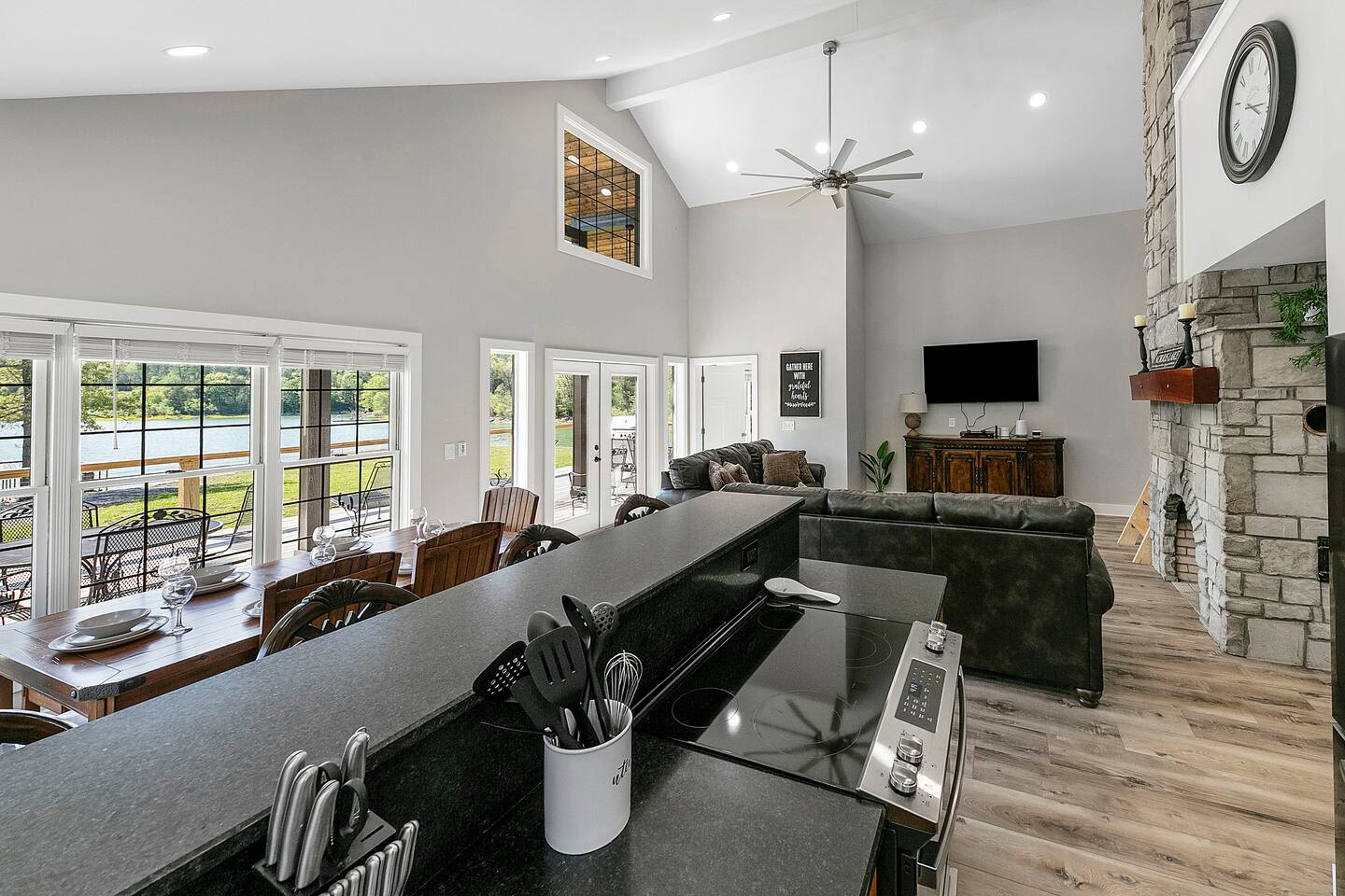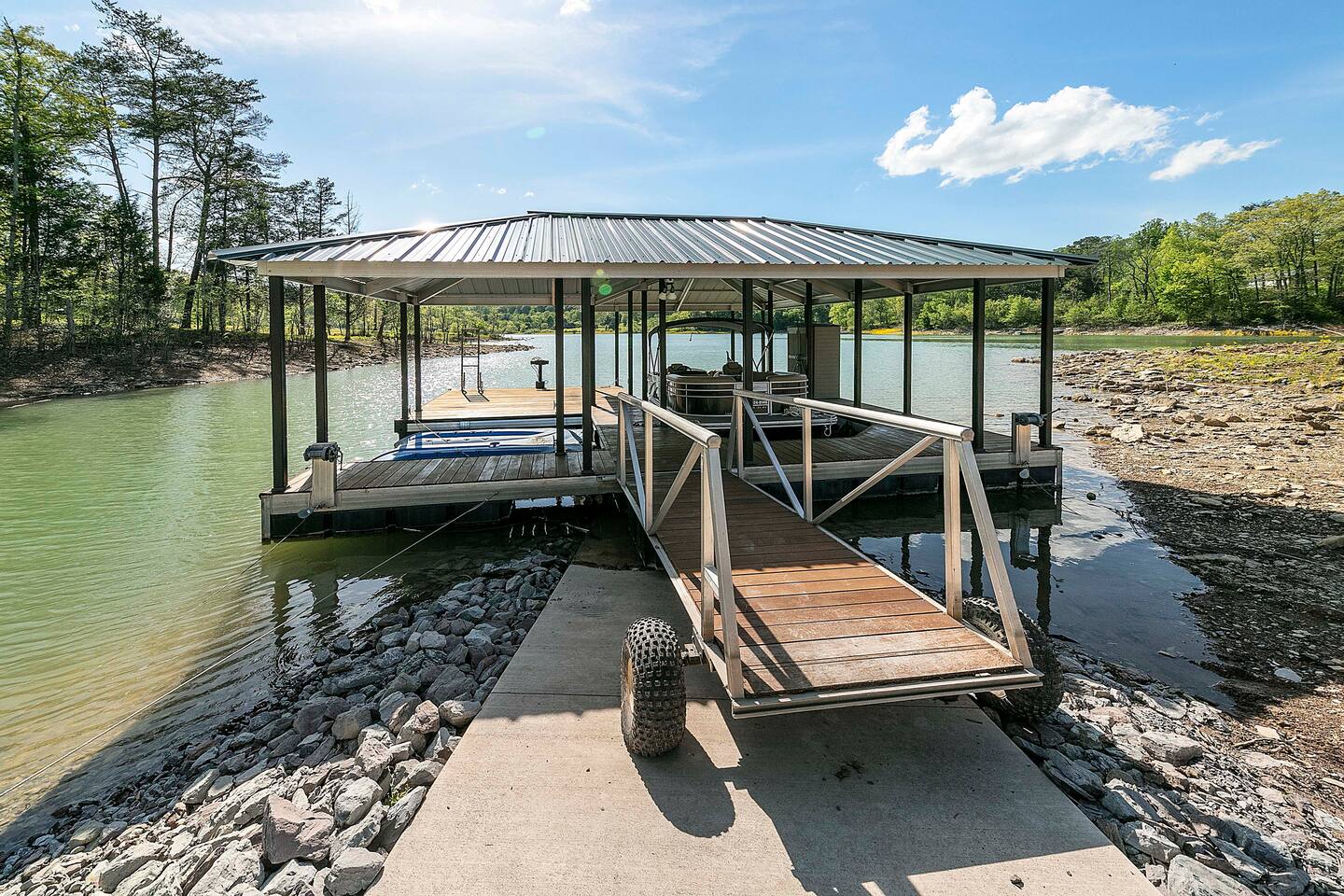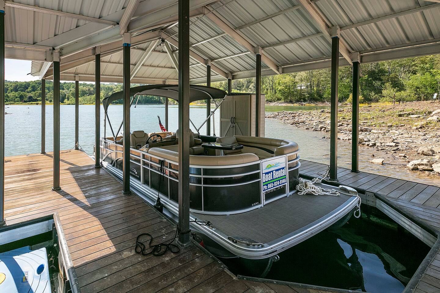 -We have multiple pontoon rentals available upon request. You must have a valid boaters license or be born before 1989 to operate. Please note we deliver the boat to the property & the boat can be taken out anytime during your stay, just note per our insurance, the boats are not to be taken out after dark. All Bookings must be made a week in advance to guarantee delivery. All boats must be returned with a full tank of gas to avoid additional charges. Please note we do not rent tubes but local marinas do & the boat is to be returned to the house after the rental period is over. Rates are as follows: Pontoon rental - $325 per day plus taxes & $50 insurance & taxes. -There are also kayaks included with the rental close to the dock. Please note that we do not provide life jackets. Please be sure to return to the kayak rack at the property once finished! -The home is located on Summer Breeze on a peaceful cove right behind Straight Creek Boat Dock in a long no wake zone that takes roughly 15-20 minutes to get out of to the main channel of the lake. Jimmy's place & Bubba Brews is about 15 minutes away by land & roughly 20-30 minutes away by water. -The home is equipped with a spacious kitchen equipped with a standard coffee maker, dishwasher, large fridge, stove, over the range microwave, & a large kitchen table! The home also includes a hot tub, weber gas grill with propane on site that we provide, Fiber WIFI, & Samsung smart tv's throughout the entire house as well as a beautiful patio area! -There is a private dock for use w/ a swim ladder & jetski port! Your trailer can be left at the property (just please note the road is tight in areas) & you can put in at Straight creek boat dock! The dock does not have power currently -Please note, this part of the lake is considered seasonal water and although you'll have normal lake levels from May to mid to late August for the dock, past that it will not be floating. The lake levels are lowered by the TVA in the Fall and raised again in the Spring & can fluctuate year to year.