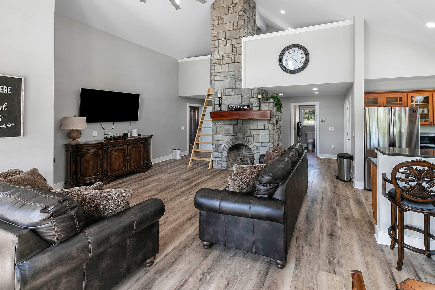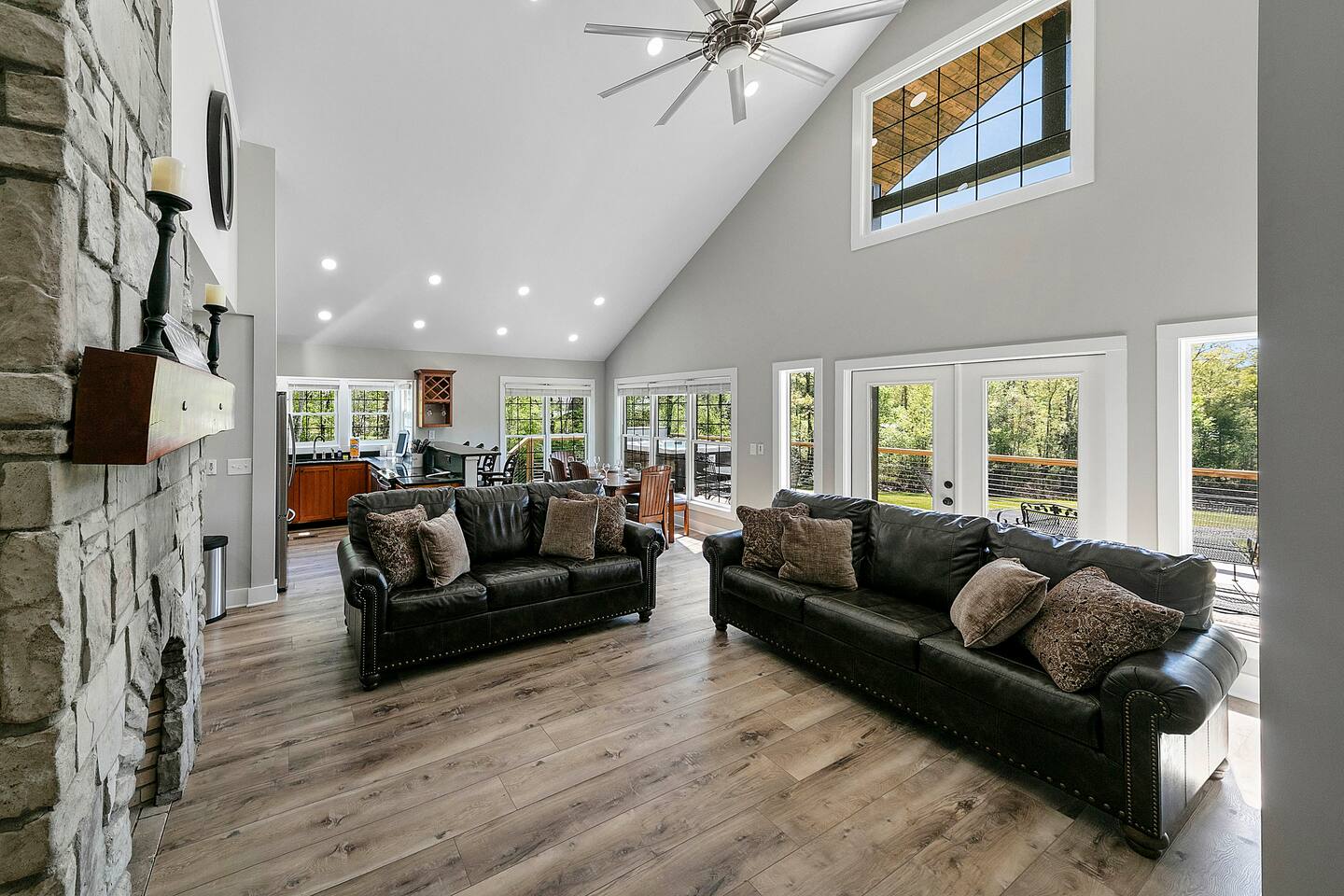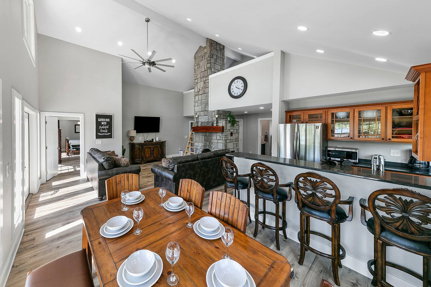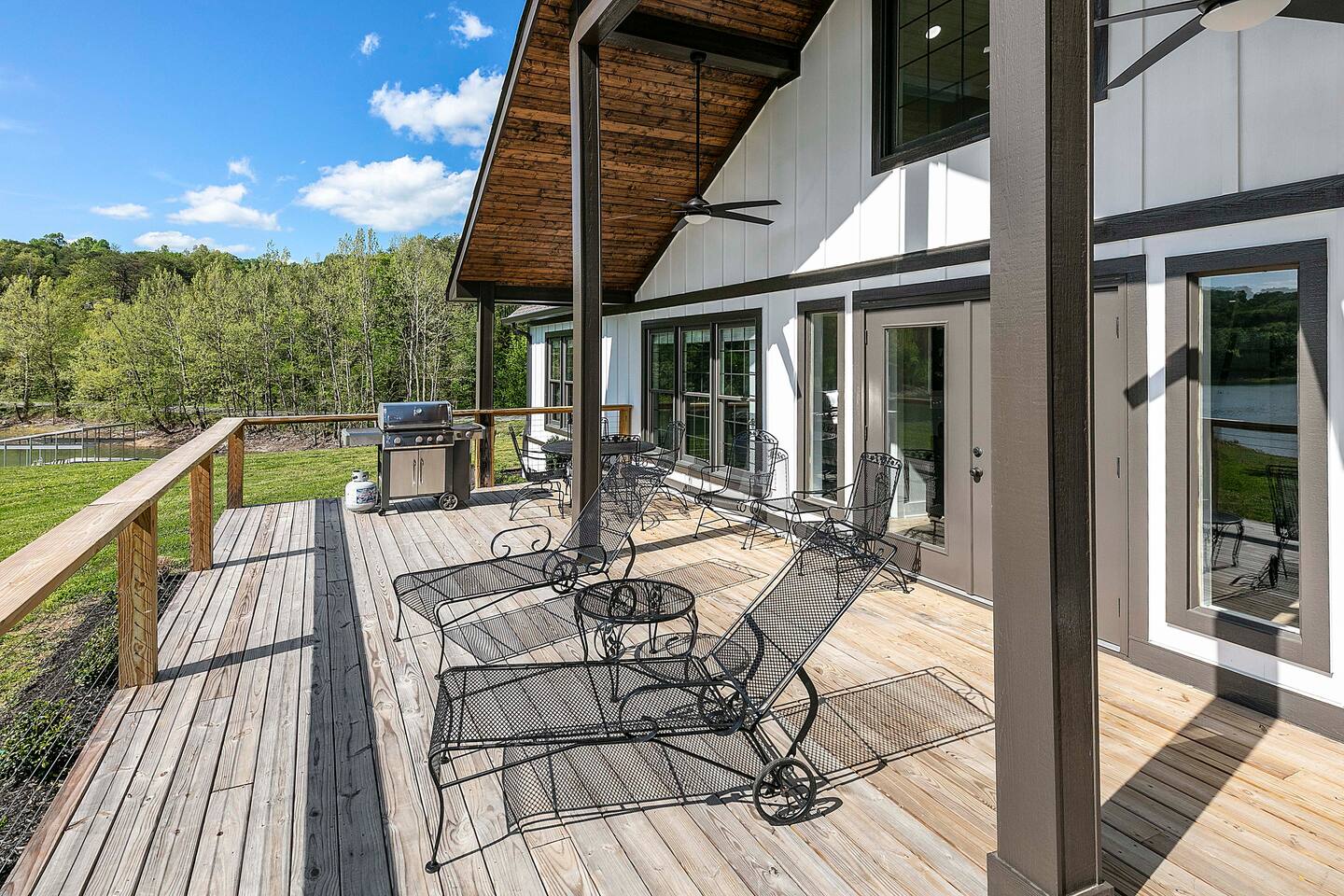 -We have multiple pontoon rentals available upon request. You must have a valid boaters license or be born before 1989 to operate. Please note we deliver the boat to the property & the boat can be taken out anytime during your stay, just note per our insurance, the boats are not to be taken out after dark. All Bookings must be made a week in advance to guarantee delivery. All boats must be returned with a full tank of gas to avoid additional charges. Please note we do not rent tubes but local marinas do & the boat is to be returned to the house after the rental period is over. Rates are as follows: Pontoon rental - $325 per day plus taxes & $50 insurance & taxes. -There are also kayaks included with the rental close to the dock. Please note that we do not provide life jackets. Please be sure to return to the kayak rack at the property once finished! -The home is located on Summer Breeze on a peaceful cove right behind Straight Creek Boat Dock in a long no wake zone that takes roughly 15-20 minutes to get out of to the main channel of the lake. Jimmy's place & Bubba Brews is about 15 minutes away by land & roughly 20-30 minutes away by water. -The home is equipped with a spacious kitchen equipped with a standard coffee maker, dishwasher, large fridge, stove, over the range microwave, & a large kitchen table! The home also includes a hot tub, weber gas grill with propane on site that we provide, Fiber WIFI, & Samsung smart tv's throughout the entire house as well as a beautiful patio area! -There is a private dock for use w/ a swim ladder & jetski port! Your trailer can be left at the property (just please note the road is tight in areas) & you can put in at Straight creek boat dock! The dock does not have power currently -Please note, this part of the lake is considered seasonal water and although you'll have normal lake levels from May to mid to late August for the dock, past that it will not be floating. The lake levels are lowered by the TVA in the Fall and raised again in the Spring & can fluctuate year to year.