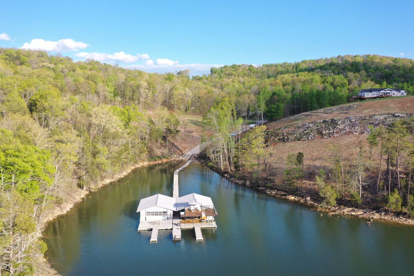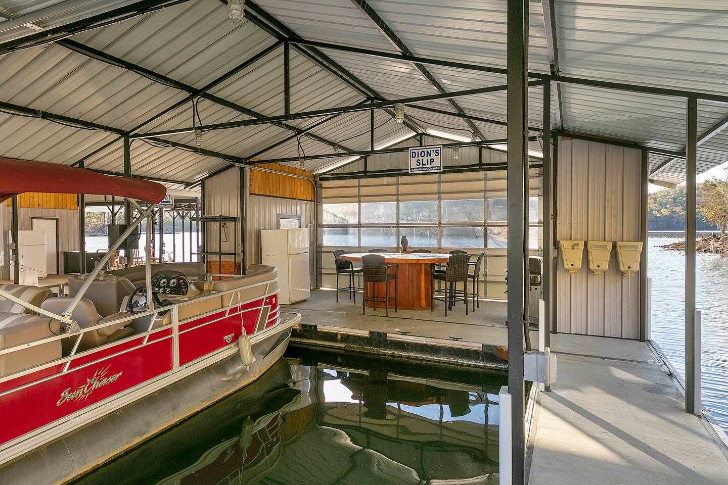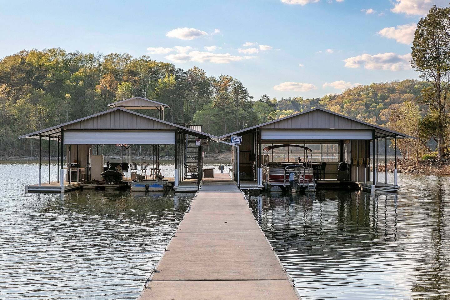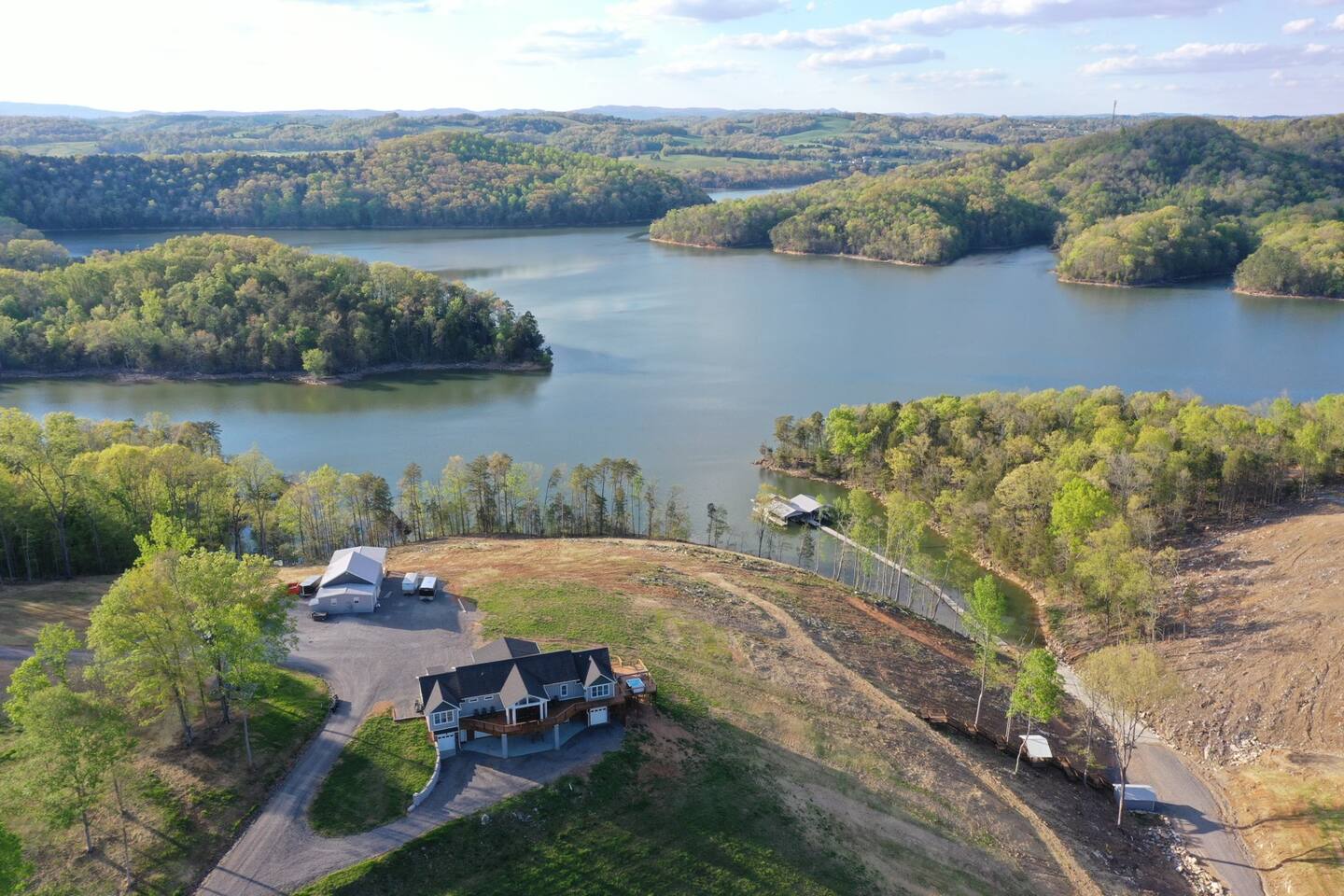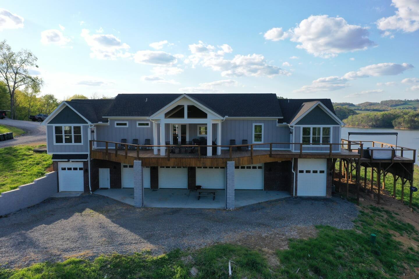 -We have multiple pontoon rentals available upon request. You must have a valid boaters license or be born before 1989 to operate. Please note we deliver the boat to the property & the boat can be taken out anytime during your stay, just note per our insurance, the boats are not to be taken out after dark. All Bookings must be made a week in advance to guarantee delivery. All boats must be returned with a full tank of gas to avoid additional charges. Please note we do not rent tubes but local marinas do & the boat is to be returned to the house after the rental period is over. Rates are as follows: Pontoon rental - $325 per day plus taxes & $50 insurance & taxes. -There are also kayaks included with the rental close to the dock. Please note that we do not provide life jackets. Please be sure to return to the kayak rack at the property once finished! -This is a custom home, elaborately detailed and decorated - very unique for a rental offering. It comfortably fits multiple families, and is situated nearby to Bubba Brews & Beach Island Marina. Norris Lake is 125 miles long, with ~850 miles of shoreline. You can spend 2 weeks on the water, and only see 1/2 of the lake. It is deep, with many inlets and creeks that allow GREAT watersports, like tubing, skiing, wakeboarding, paddle boarding, kayaking, etc. -The home is equipped with a spacious kitchen equipped with a standard coffee maker & a keurig, dishwasher, 2 fridges upstairs, 1 downstairs, & another at the dock, stove,microwave & much more! The home also includes a hot tub & indoor swim spa, ping pong table, weber gas grill w/ an additiona grill at the dock with propane on site that we provide, Fiber WIFI, & Samsung Smart TV’s throughout the entire house. -To access the dock, you are free to walk down to it OR you can drive down the gravel pathway that loops around the house all the way to the dock. -Please note you have access to one covered slip & one uncovered slip. Several of our pontoon rentals stay at this locations & our staff may be by to occasionally move one or bring one in. -We recommend launching prior to going to the property as it is a curvy single lane road to get to the property. Beach island marina has a launch or you can use the free launch called Judge Willard J. Brogan's TVA Boat Ramp. The address is 5697 TN-33, New Tazewell, TN 37825, USA. This is probably the easier one as it is right by the property by water & does not cost anything to put in. We have several options for keeping your trailer for the duration of your stay! You can contact the marina where you put in at (please be sure to contact them to confirm), we have a gated warehouse about 10 mins away that you can keep it at, or you can drop it at our other property a few mins away in the large field to the left of the house. Please just be sure to get in contact with us if you would like to use either of our options! -Please note, this part of the lake has year round water. Just please be advised that lake levels are lowered by the TVA in the Fall and raised again in the Spring & can fluctuate in off season months.