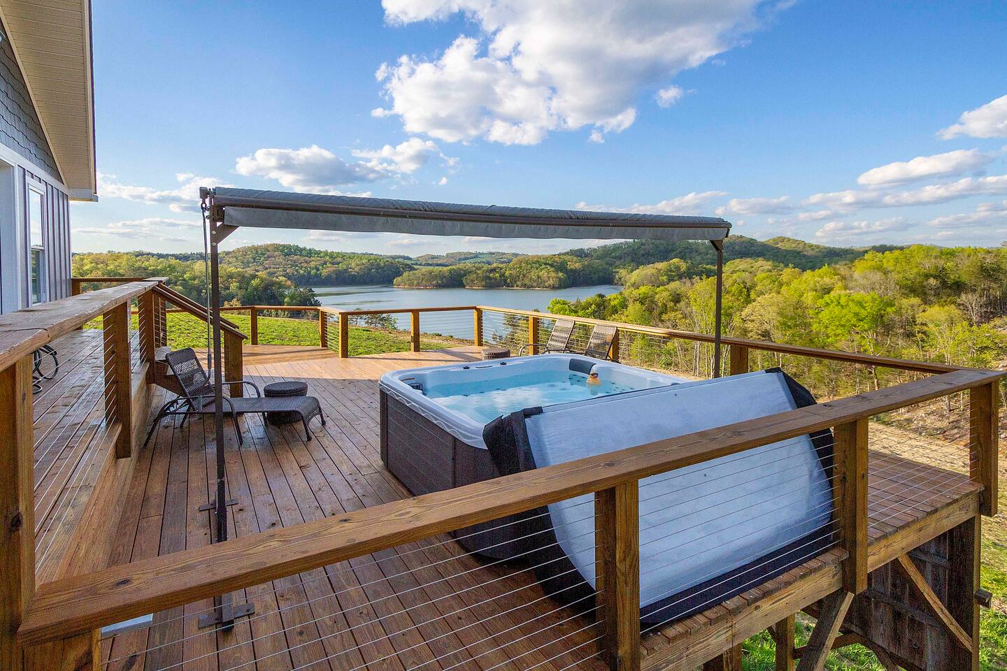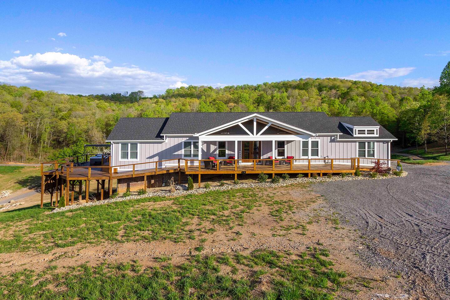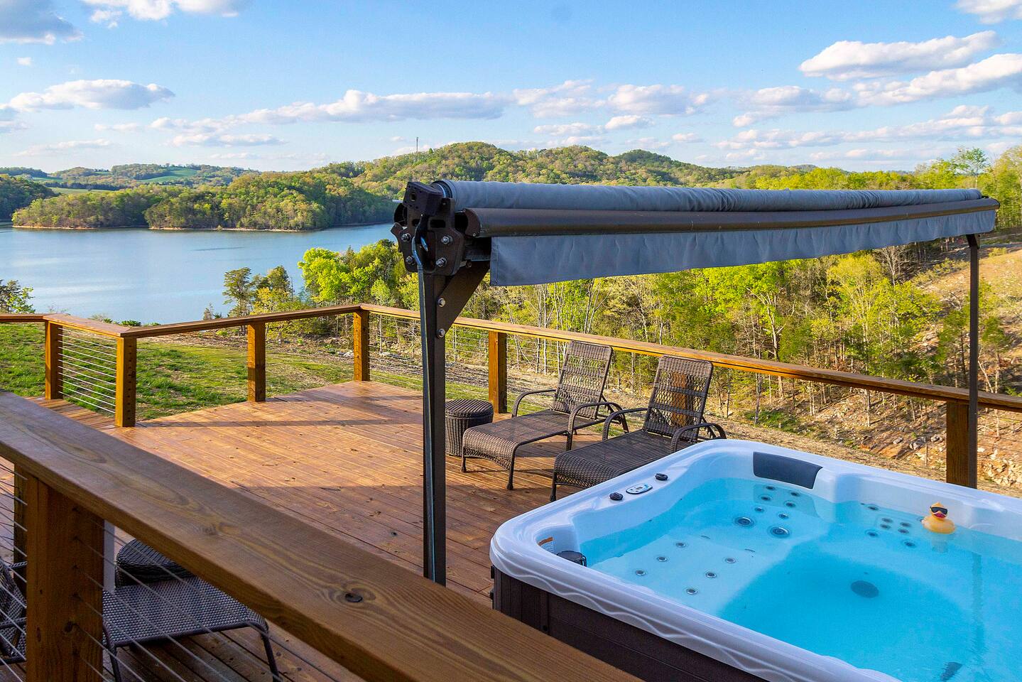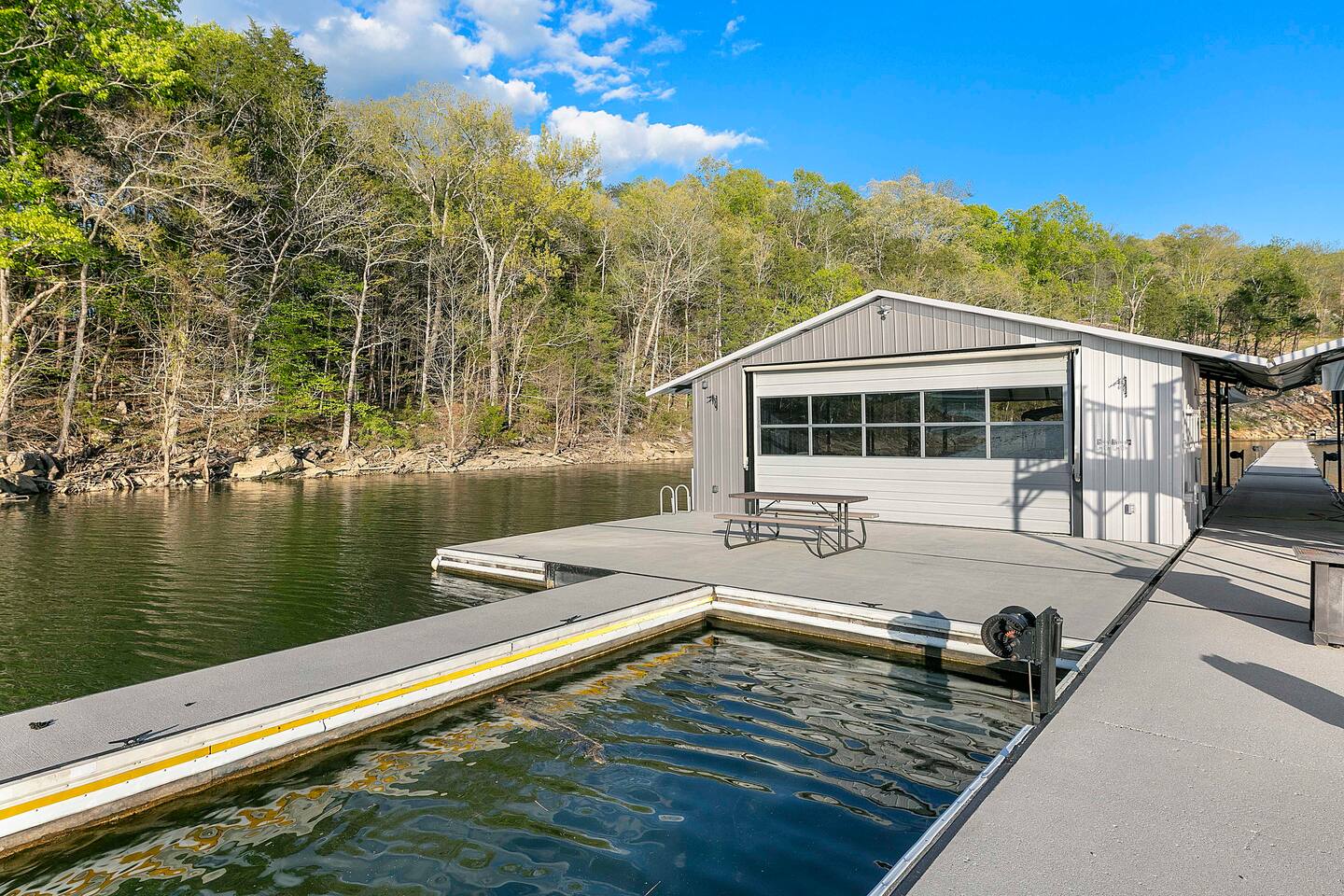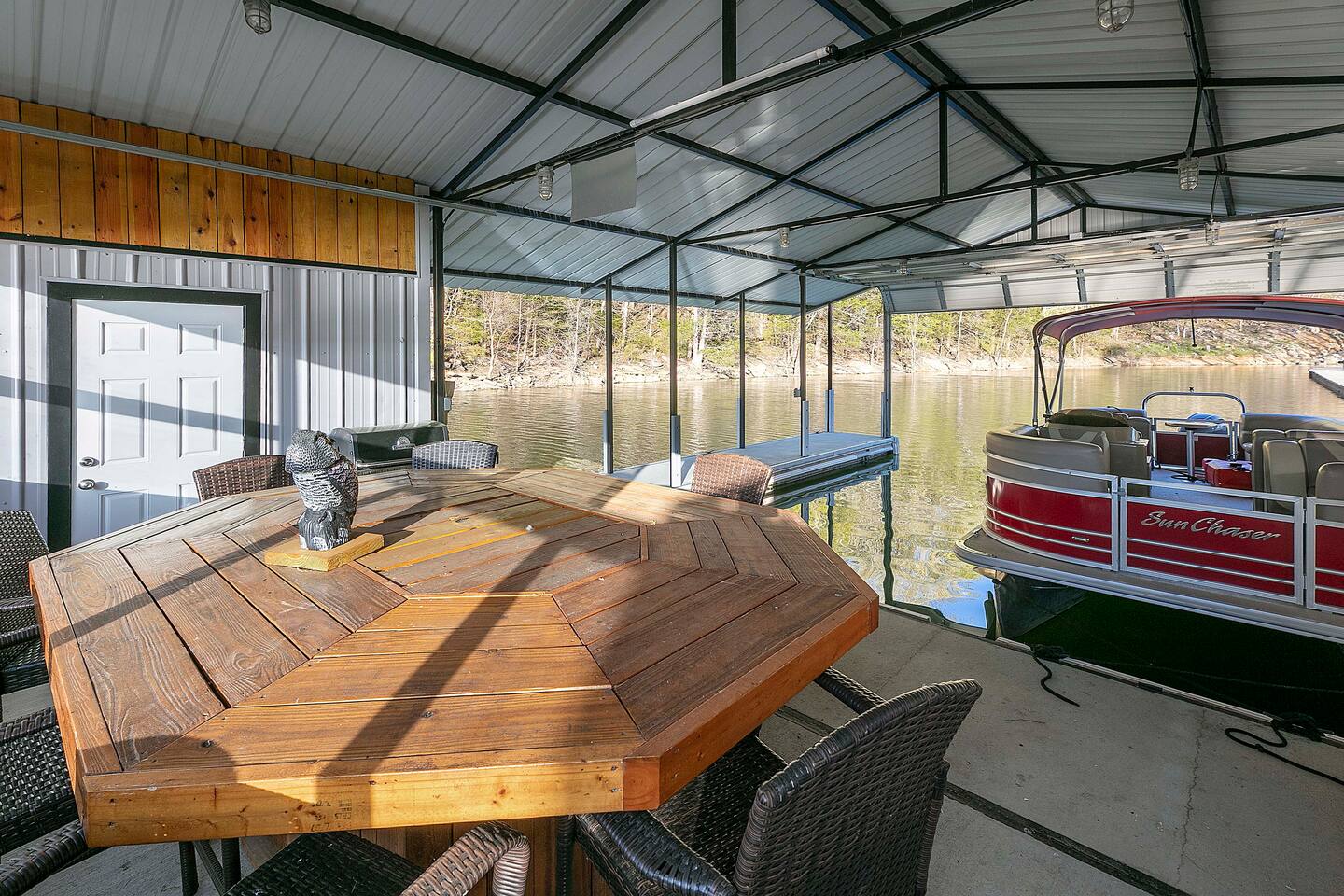 -We have multiple pontoon rentals available upon request. You must have a valid boaters license or be born before 1989 to operate. Please note we deliver the boat to the property & the boat can be taken out anytime during your stay, just note per our insurance, the boats are not to be taken out after dark. All Bookings must be made a week in advance to guarantee delivery. All boats must be returned with a full tank of gas to avoid additional charges. Please note we do not rent tubes but local marinas do & the boat is to be returned to the house after the rental period is over. Rates are as follows: Pontoon rental - $325 per day plus taxes & $50 insurance & taxes. -There are also kayaks included with the rental close to the dock. Please note that we do not provide life jackets. Please be sure to return to the kayak rack at the property once finished! -This is a custom home, elaborately detailed and decorated - very unique for a rental offering. It comfortably fits multiple families, and is situated nearby to Bubba Brews & Beach Island Marina. Norris Lake is 125 miles long, with ~850 miles of shoreline. You can spend 2 weeks on the water, and only see 1/2 of the lake. It is deep, with many inlets and creeks that allow GREAT watersports, like tubing, skiing, wakeboarding, paddle boarding, kayaking, etc. -The home is equipped with a spacious kitchen equipped with a standard coffee maker & a keurig, dishwasher, 2 fridges upstairs, 1 downstairs, & another at the dock, stove,microwave & much more! The home also includes a hot tub & indoor swim spa, ping pong table, weber gas grill w/ an additiona grill at the dock with propane on site that we provide, Fiber WIFI, & Samsung Smart TV’s throughout the entire house. -To access the dock, you are free to walk down to it OR you can drive down the gravel pathway that loops around the house all the way to the dock. -Please note you have access to one covered slip & one uncovered slip. Several of our pontoon rentals stay at this locations & our staff may be by to occasionally move one or bring one in. -We recommend launching prior to going to the property as it is a curvy single lane road to get to the property. Beach island marina has a launch or you can use the free launch called Judge Willard J. Brogan's TVA Boat Ramp. The address is 5697 TN-33, New Tazewell, TN 37825, USA. This is probably the easier one as it is right by the property by water & does not cost anything to put in. We have several options for keeping your trailer for the duration of your stay! You can contact the marina where you put in at (please be sure to contact them to confirm), we have a gated warehouse about 10 mins away that you can keep it at, or you can drop it at our other property a few mins away in the large field to the left of the house. Please just be sure to get in contact with us if you would like to use either of our options! -Please note, this part of the lake has year round water. Just please be advised that lake levels are lowered by the TVA in the Fall and raised again in the Spring & can fluctuate in off season months.