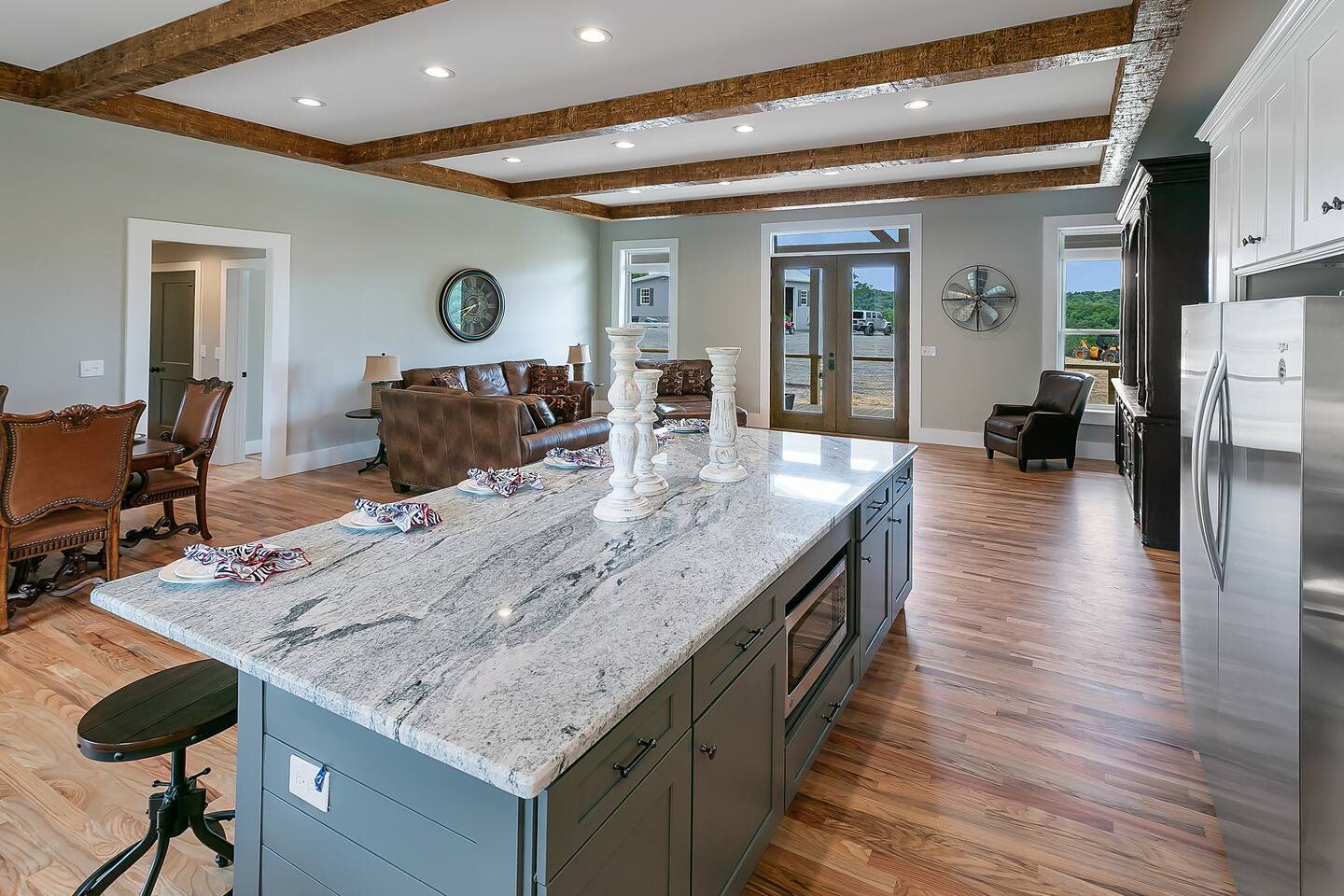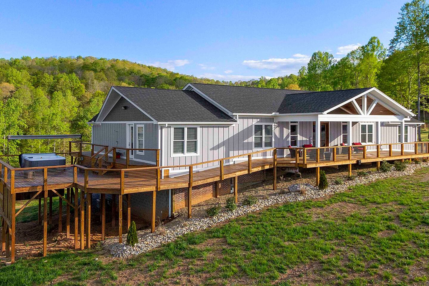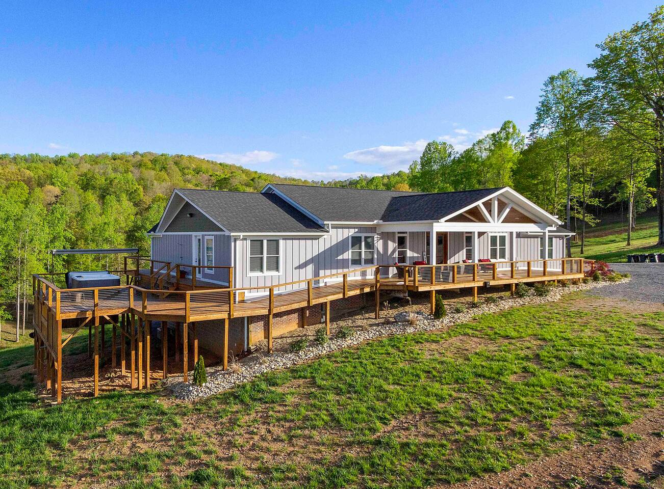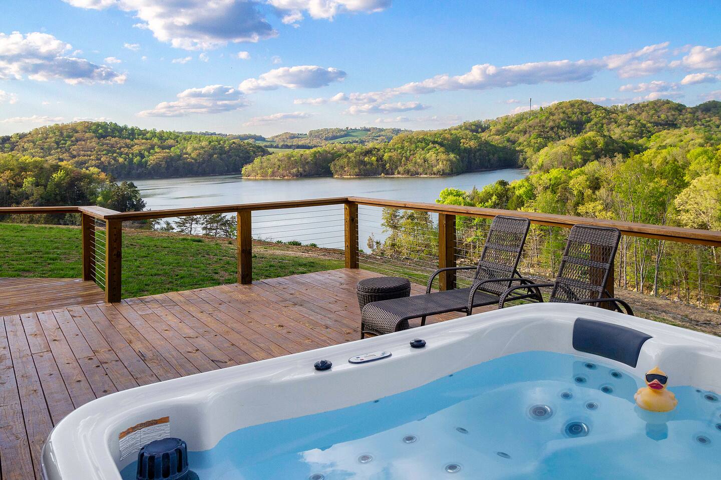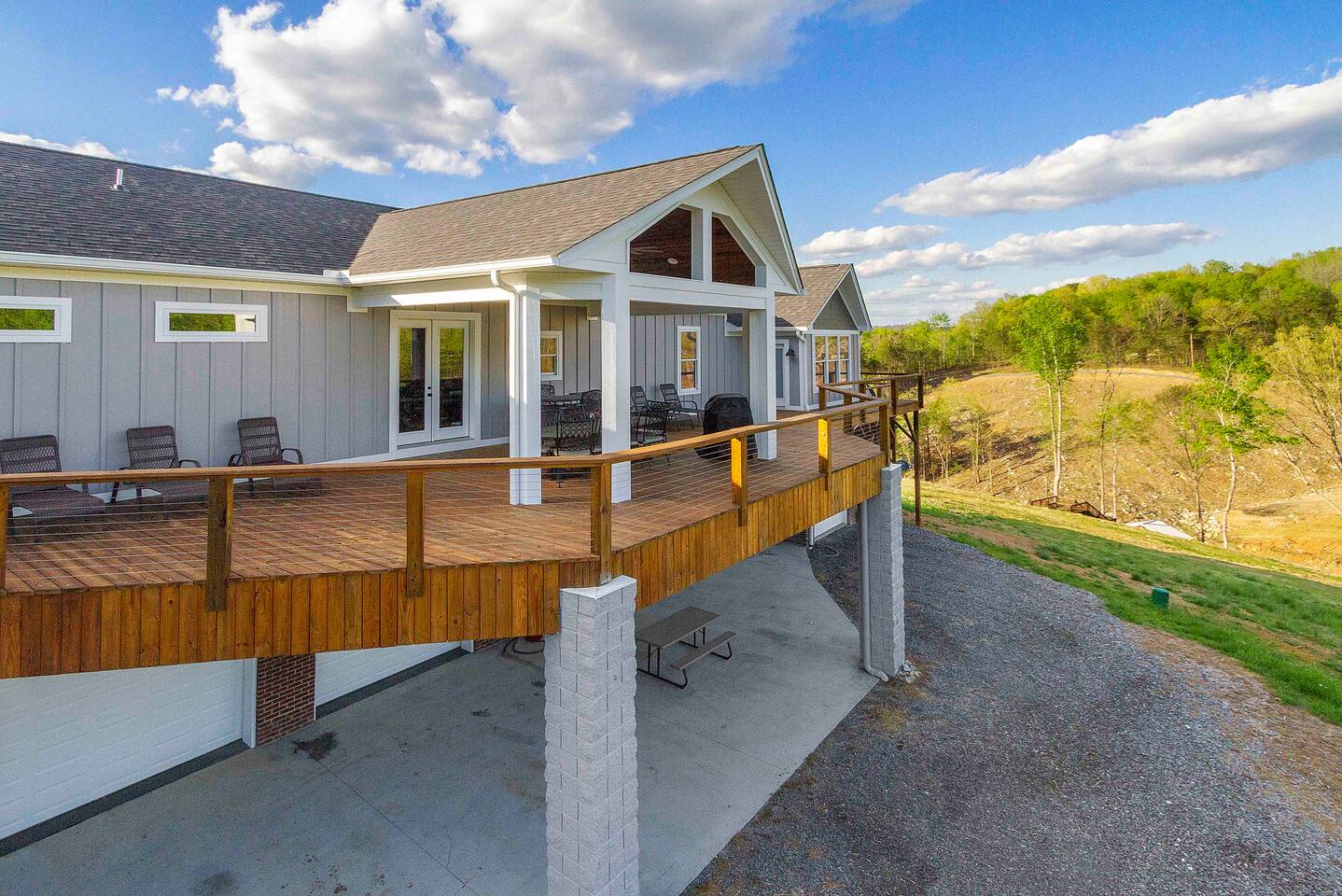 -We have multiple pontoon rentals available upon request. You must have a valid boaters license or be born before 1989 to operate. Please note we deliver the boat to the property & the boat can be taken out anytime during your stay, just note per our insurance, the boats are not to be taken out after dark. All Bookings must be made a week in advance to guarantee delivery. All boats must be returned with a full tank of gas to avoid additional charges. Please note we do not rent tubes but local marinas do & the boat is to be returned to the house after the rental period is over. Rates are as follows: Pontoon rental - $325 per day plus taxes & $50 insurance & taxes. -There are also kayaks included with the rental close to the dock. Please note that we do not provide life jackets. Please be sure to return to the kayak rack at the property once finished! -This is a custom home, elaborately detailed and decorated - very unique for a rental offering. It comfortably fits multiple families, and is situated nearby to Bubba Brews & Beach Island Marina. Norris Lake is 125 miles long, with ~850 miles of shoreline. You can spend 2 weeks on the water, and only see 1/2 of the lake. It is deep, with many inlets and creeks that allow GREAT watersports, like tubing, skiing, wakeboarding, paddle boarding, kayaking, etc. -The home is equipped with a spacious kitchen equipped with a standard coffee maker & a keurig, dishwasher, 2 fridges upstairs, 1 downstairs, & another at the dock, stove,microwave & much more! The home also includes a hot tub & indoor swim spa, ping pong table, weber gas grill w/ an additiona grill at the dock with propane on site that we provide, Fiber WIFI, & Samsung Smart TV’s throughout the entire house. -To access the dock, you are free to walk down to it OR you can drive down the gravel pathway that loops around the house all the way to the dock. -Please note you have access to one covered slip & one uncovered slip. Several of our pontoon rentals stay at this locations & our staff may be by to occasionally move one or bring one in. -We recommend launching prior to going to the property as it is a curvy single lane road to get to the property. Beach island marina has a launch or you can use the free launch called Judge Willard J. Brogan's TVA Boat Ramp. The address is 5697 TN-33, New Tazewell, TN 37825, USA. This is probably the easier one as it is right by the property by water & does not cost anything to put in. We have several options for keeping your trailer for the duration of your stay! You can contact the marina where you put in at (please be sure to contact them to confirm), we have a gated warehouse about 10 mins away that you can keep it at, or you can drop it at our other property a few mins away in the large field to the left of the house. Please just be sure to get in contact with us if you would like to use either of our options! -Please note, this part of the lake has year round water. Just please be advised that lake levels are lowered by the TVA in the Fall and raised again in the Spring & can fluctuate in off season months.