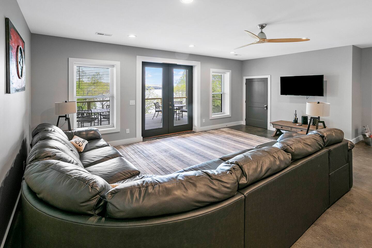 -We have multiple pontoon rentals available upon request. You must have a valid boaters license or be born before 1989 to operate. Please note we deliver the boat to the property & the boat can be taken out anytime during your stay, just note per our insurance, the boats are not to be taken out after dark. All Bookings must be made a week in advance to guarantee delivery. All boats must be returned with a full tank of gas to avoid additional charges. Please note we do not rent tubes but local marinas do & the boat is to be returned to the house after the rental period is over. Rates are as follows: Pontoon rental - $325 per day plus taxes & $50 insurance & taxes. -There are also kayaks included with the rental close to the dock. Please note that we do not provide life jackets. Please be sure to return to the kayak rack at the property once finished! -This is a custom home, elaborately detailed and decorated - very unique for a rental offering. It comfortably fits multiple families, and is situated nearby to Bubba Brews & Beach Island Marina. Norris Lake is 125 miles long, with ~850 miles of shoreline. You can spend 2 weeks on the water, and only see 1/2 of the lake. It is deep, with many inlets and creeks that allow GREAT watersports, like tubing, skiing, wake boarding, paddle boarding, kayaking, etc. -The walk from the lower deck to the dock is 420 feet of gravel for reference & has a steep grade. No more than 4 vehicles allowed & rental includes one covered slip for guest use. -The home is equipped with a spacious kitchen equipped with a standard coffee maker, dishwasher, large fridge, stove,microwave & much more! The home also includes a hot tub, ping pong table, weber gas grill with propane on site that we provide, Fiber WIFI, & Samsung Smart TV’s throughout the entire house as well as a double deck with their own patio area! -There is a private dock with a swim ladder & jet ski port! One boat is allowed per house. Our pontoon rental stays in the other slip! Please note there is not jumping off the top deck! -It is not allowed to leave your trailer at the property & is highly recommended to launch prior to going to the property. The road is a single lane to get to the property & has a steep driveway with a sharp turn which would make turning around with a trailer difficult. You can drop the trailer at the marina (please be sure to contact them to confirm) or we have a gated warehouse nearby that you can drop your trailer at. If you have any questions about this, feel free to contact me anytime. The closest launch is at Beach Island Marina (5-10 mins away)! -Please note, this part of the lake has year round water. Just please be advised that lake levels are lowered by the TVA in the Fall and raised again in the Spring & can fluctuate in off season months.