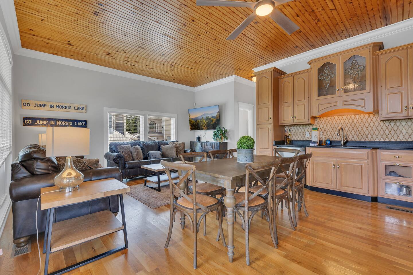 Beautiful home located in a quiet country setting on pristine Norris Lake in the Dodson Creek Cove! Conveniently located 10 minutes to Maynardville, TN and only 30 minutes to downtown Knoxville. We are neighbors with Beach Island Marina & Bubba Brews! The home comes with a private dock & a jetski port for all your boating needs. There is a gradual grade to get down to the water with a complete concrete walkway. No more than 3 cars allowed due to limited parking w/ the shared driveway.