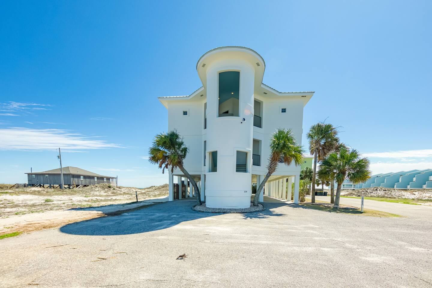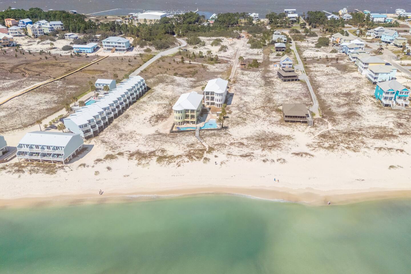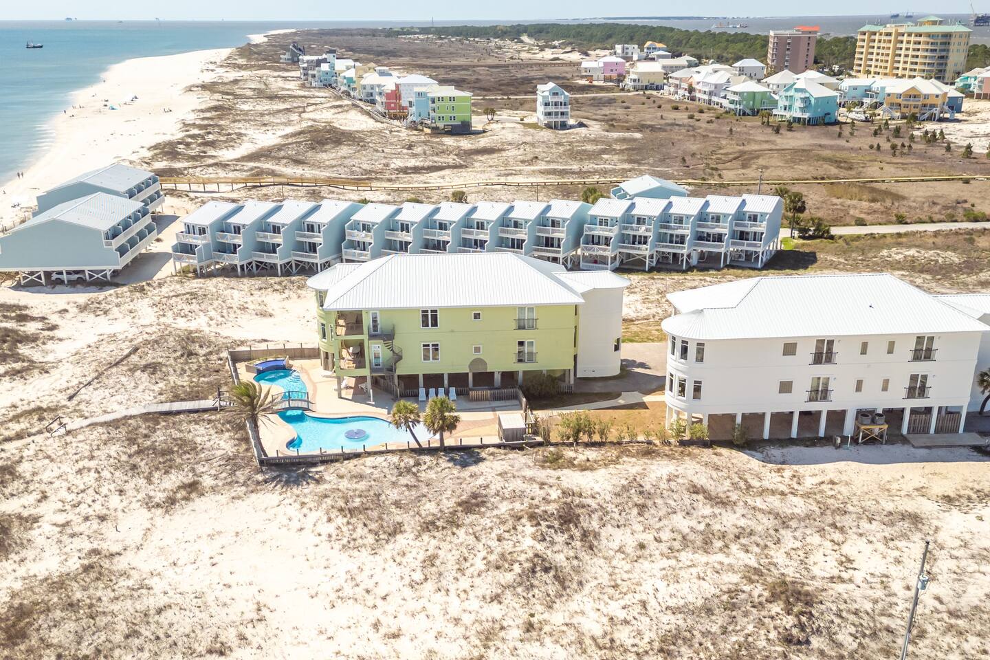 -THIS UNIT SHARES A POOL WITH 3 OTHER UNITS. -This is a custom home, elaborately detailed and decorated - very unique for a rental offering. It comfortably fits multiple families (Sleeps 20), and is situated near multiple amenities listed below! -The home is equipped with a spacious kitchen equipped with a combination coffee maker, 2 dishwashers, large fridge, 2 ovens, one convection, microwave, air fryers, crockpots, 2 sets of washer & dryers, covered balconies, covered parking, wet bar, & much more! The home also includes a shared pool with the 3 other units at the property! We have high speed fiber internet with WIFI mesh systems throughout with Smart TV’s pre loaded with all your favorite streaming apps! There is a shared propane grill at the bottom of the unit between both our units. It is rust resistant however the salt air destroys everything so while the outside may look great, the inside could have some rust. It is advisable to use aluminum foil when you place your food inside the grill! Each unit has their own grilling utensils as well! -If you are looking for a quiet, secluded place to enjoy the ocean and mother nature, this is it. There is Fort Morgan Marina where you can charter deep sea or inshore fishing trips and Tacky Jacks restaurant (.4 miles away), right across the street. Stop by the Sassy Bass Amazin' Grill (6 mins away) for some local Navy Cove oysters or one of their specialty drinks and a few other restaurants and stores close by. -The ferry to Dauphin Island is 4 minutes away from the property to visit the Sea Lab & runs multiple times daily (weather permitting). We will send the link to the schedule once the booking is complete! -Historic Fort Morgan is only 5 minutes away which has been around since 1834. We will send a link to it as well once the booking is confirmed! -For Golf, There are two courses nearby with several others within a 30 minutes range. Kiva Dunes (8 minutes away) & Peninsula Golf & Racquet (19 minutes, 27 hole course) are the most popular in the area! -If you want major outlet shopping or more night activity, Downtown Gulf Shores is 18 miles East. Although Downtown is 18 miles away, we want to be very clear and transparent that you will need to budget about 30 min driving there and back based on traffic and distance depending on the time of year. If you want to plan a trip to Foley which is further North, plan for a total of 45 min. Our home is in a great remote spot away from crowds so expect longer drive time. However, there are many restaurants now closer than downtown and several markets for basic food and pantry items. -Groceries - There is a Walmart 19 miles away for all your grocery and pick up needs as well! -There is high speed internet (1 Gig) with a WI-FI mesh system throughout as well as a printer for your use!