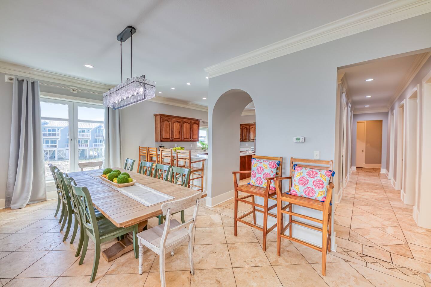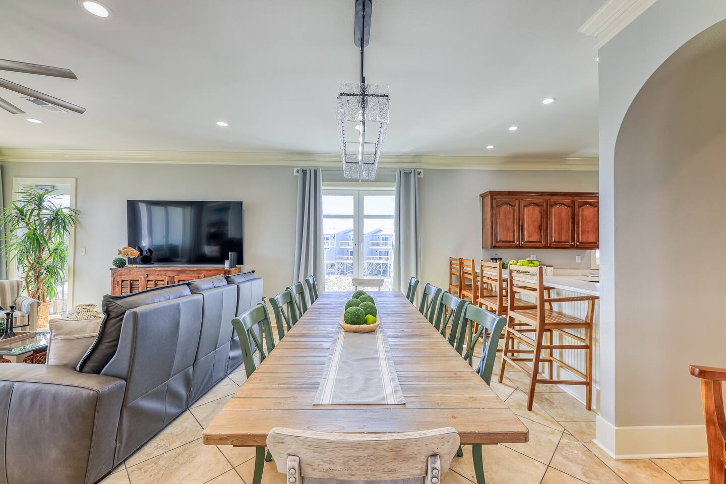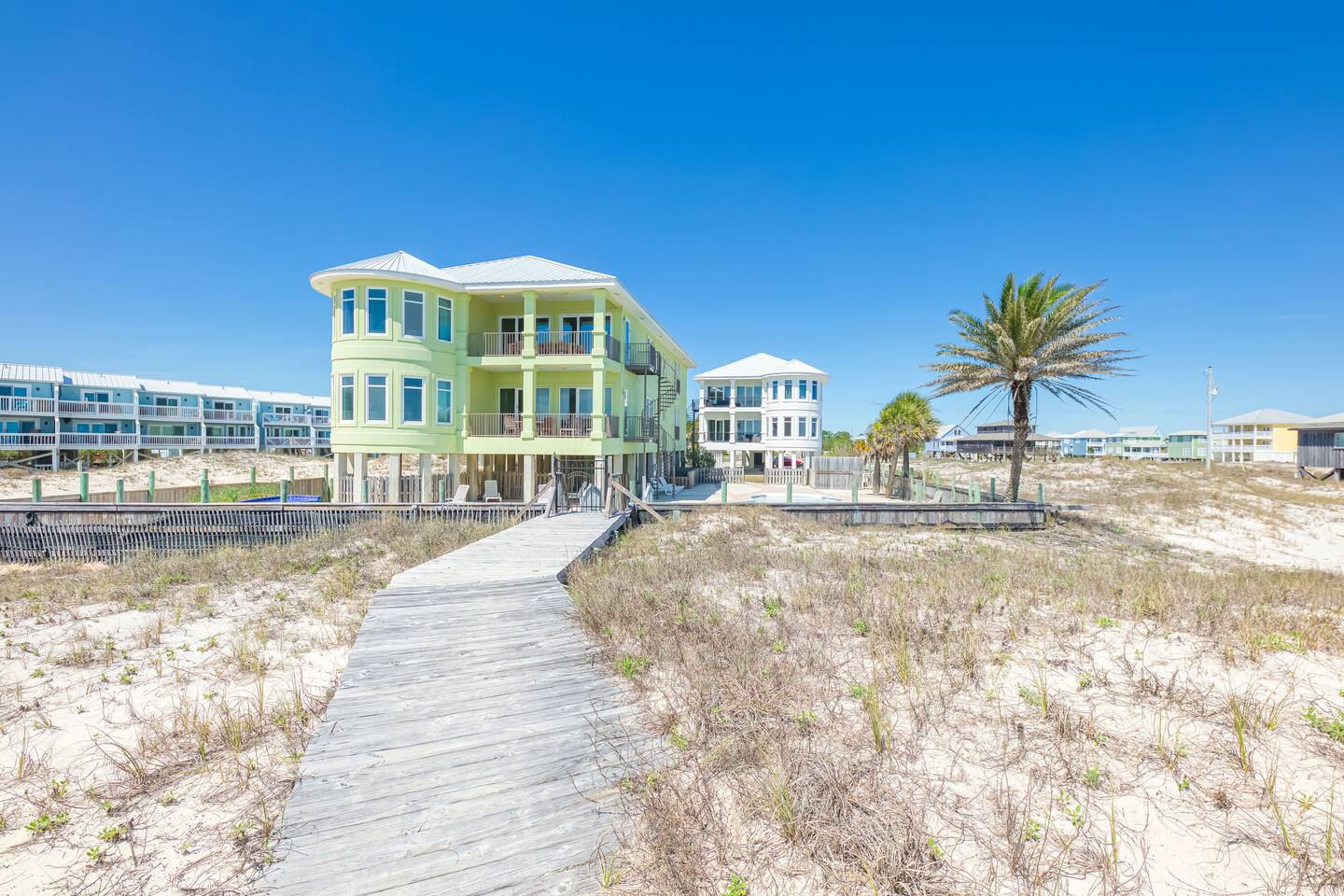 -THIS UNIT SHARES A POOL WITH 3 OTHER UNITS. -This is a custom home, elaborately detailed and decorated - very unique for a rental offering. It comfortably fits multiple families (Sleeps 20), and is situated near multiple amenities listed below! -The home is equipped with a spacious kitchen equipped with a combination coffee maker, 2 dishwashers, large fridge, 2 ovens, one convection, microwave, air fryers, crockpots, 2 sets of washer & dryers, covered balconies, covered parking, wet bar, & much more! The home also includes a shared pool with the 3 other units at the property! We have high speed fiber internet with WIFI mesh systems throughout with Smart TV’s pre loaded with all your favorite streaming apps! There is a shared propane grill at the bottom of the unit between both our units. It is rust resistant however the salt air destroys everything so while the outside may look great, the inside could have some rust. It is advisable to use aluminum foil when you place your food inside the grill! Each unit has their own grilling utensils as well! -If you are looking for a quiet, secluded place to enjoy the ocean and mother nature, this is it. There is Fort Morgan Marina where you can charter deep sea or inshore fishing trips and Tacky Jacks restaurant (.4 miles away), right across the street. Stop by the Sassy Bass Amazin' Grill (6 mins away) for some local Navy Cove oysters or one of their specialty drinks and a few other restaurants and stores close by. -The ferry to Dauphin Island is 4 minutes away from the property to visit the Sea Lab & runs multiple times daily (weather permitting). We will send the link to the schedule once the booking is complete! -Historic Fort Morgan is only 5 minutes away which has been around since 1834. We will send a link to it as well once the booking is confirmed! -For Golf, There are two courses nearby with several others within a 30 minutes range. Kiva Dunes (8 minutes away) & Peninsula Golf & Racquet (19 minutes, 27 hole course) are the most popular in the area! -If you want major outlet shopping or more night activity, Downtown Gulf Shores is 18 miles East. Although Downtown is 18 miles away, we want to be very clear and transparent that you will need to budget about 30 min driving there and back based on traffic and distance depending on the time of year. If you want to plan a trip to Foley which is further North, plan for a total of 45 min. Our home is in a great remote spot away from crowds so expect longer drive time. However, there are many restaurants now closer than downtown and several markets for basic food and pantry items. -Groceries - There is a Walmart 19 miles away for all your grocery and pick up needs as well! -There is high speed internet (1 Gig) with a WI-FI mesh system throughout as well as a printer for your use!