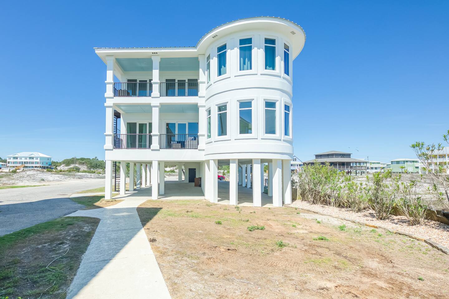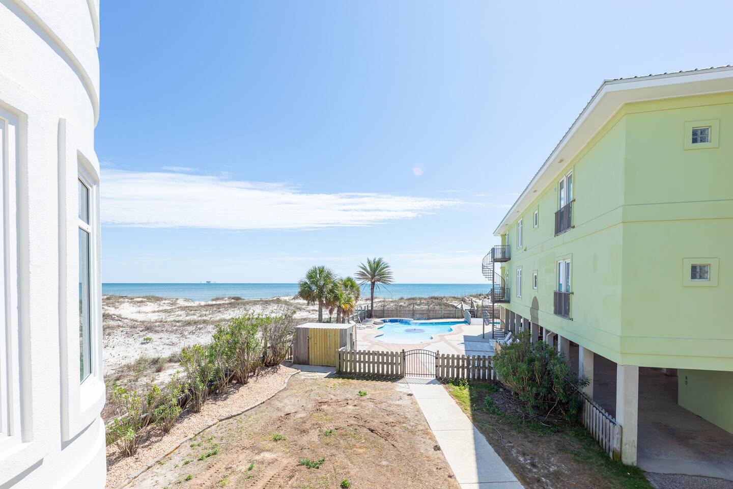 -Check in is at 4 & Check out is at 10 & you must be 25 to rent -While all homes/units are on pilings, once you make entry, all living is on one floor. -We are beachfront! We do have a boardwalk that protects the dunes in front of our home & is roughly a 2 minute walk to the beach. If every home had their own walkway to the beach, Hurricanes (like Sally that hit us in 2020) would cause a lot more damage to our home and the beach itself. -• Security camera/recording device — “For your safety and protection, some properties have cameras installed outside. Surveillance cameras are not inside any of our properties.” -We provide a limited amount of beach towels, games, one cooler, 2 umbrellas which must all be accounted for at the end of your stay. They are located in the closet right outside the main door. It is recommended to bring extra! -There is a shared propane grill at the bottom of the unit between both our units. It is rust resistant however the salt air destroys everything so while the outside may look great, the inside could have some rust. It is advisable to use aluminum foil when you place your food inside the grill! Each unit has their own grilling utensils as well! -There is a Waste Management dumpster on site for all your garbage needs!