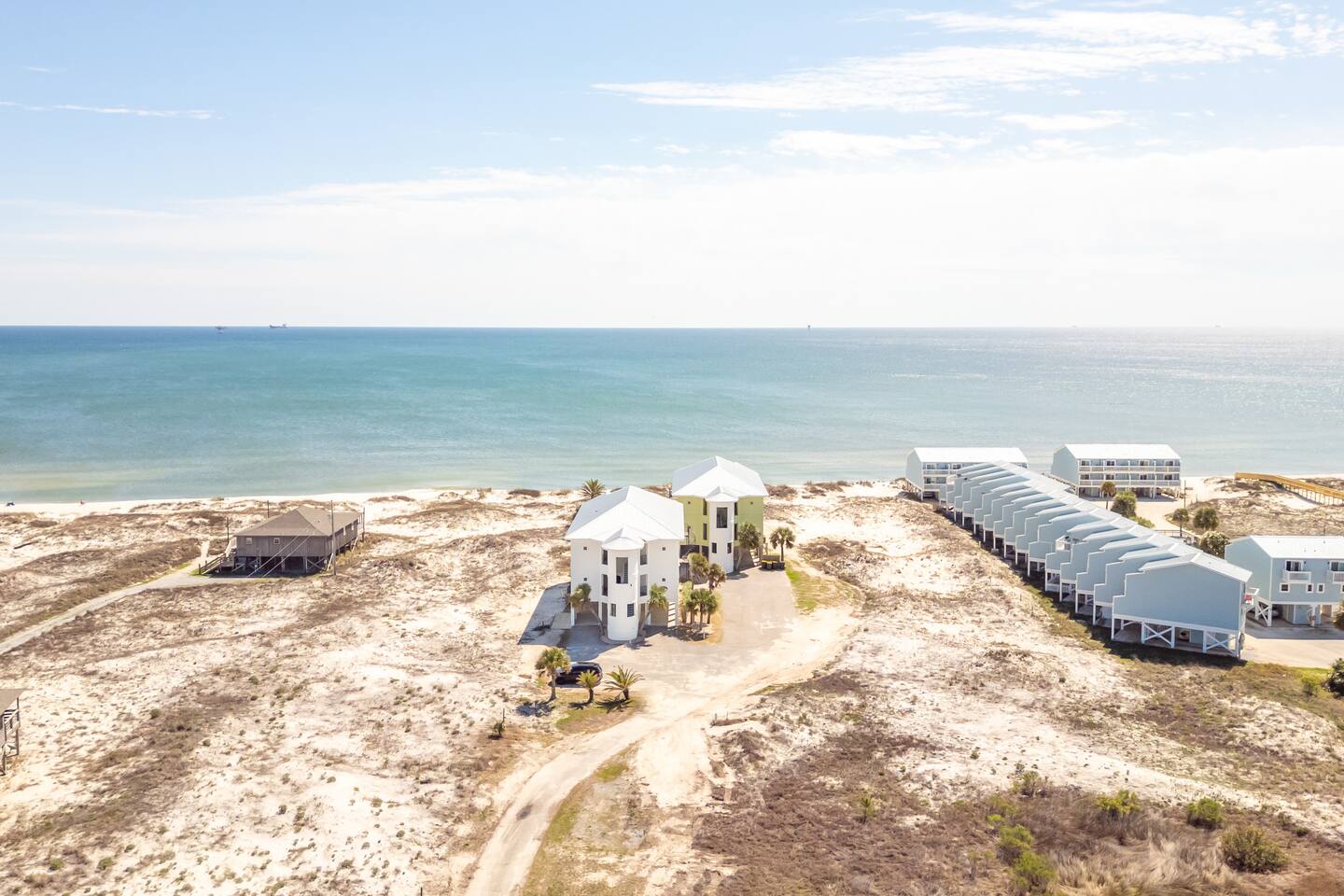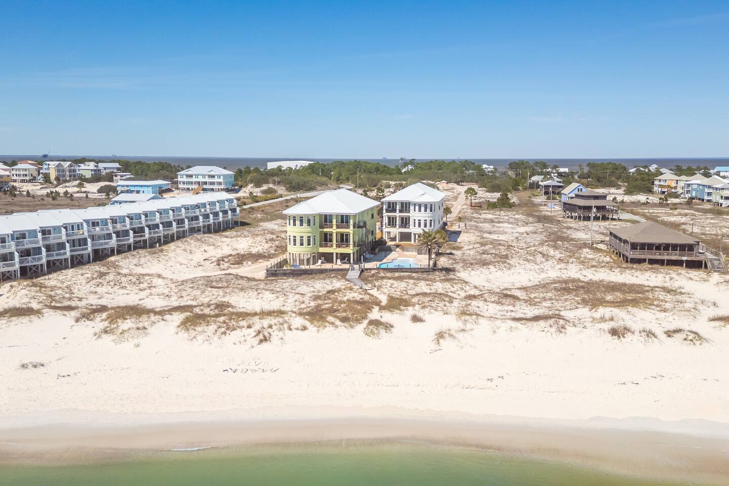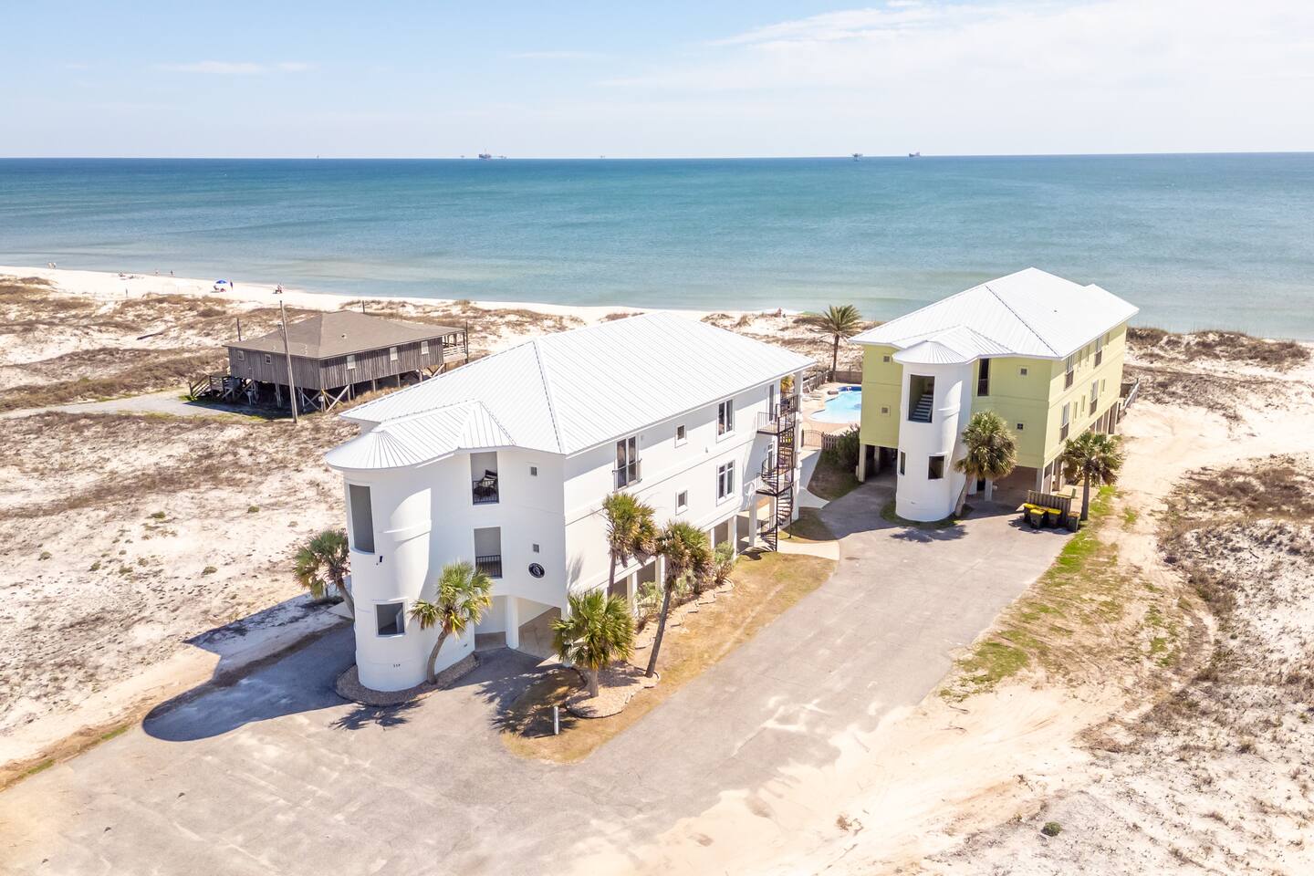 -THIS UNIT SHARES A POOL WITH 3 OTHER UNITS. -This is a custom home, elaborately detailed and decorated - very unique for a rental offering. It comfortably fits multiple families (Sleeps 20), and is situated near multiple amenities listed below! -The home is equipped with a spacious kitchen equipped with a combination coffee maker, 2 dishwashers, 2 large fridges, 2 ovens, one convection, microwave, air fryers, crockpots, 2 sets of washer & dryers, covered balconies, covered parking, wet bar, & much more! The home also includes a shared pool with the 3 other units at the property! We have high speed fiber internet with WIFI mesh systems throughout with Smart TV’s pre loaded with all your favorite streaming apps & Youtube TV as well! There is a shared propane grill at the bottom of the unit between both our units. It is rust resistant however the salt air destroys everything so while the outside may look great, the inside could have some rust. It is advisable to use aluminum foil when you place your food inside the grill! Each unit has their own grilling utensils as well! -If you are looking for a quiet, secluded place to enjoy the ocean and mother nature, this is it. There is Fort Morgan Marina where you can charter deep sea or inshore fishing trips and Tacky Jacks restaurant (.4 miles away), right across the street. Stop by the Sassy Bass Amazin' Grill (6 mins away) for some local Navy Cove oysters or one of their specialty drinks and a few other restaurants and stores close by. -The ferry to Dauphin Island is 4 minutes away from the property to visit the Sea Lab & runs multiple times daily (weather permitting). We will send the link to the schedule once the booking is complete! -Historic Fort Morgan is only 5 minutes away which has been around since 1834. We will send a link to it as well once the booking is confirmed! -For Golf, There are two courses nearby with several others within a 30 minutes range. Kiva Dunes (8 minutes away) & Peninsula Golf & Racquet (19 minutes, 27 hole course) are the most popular in the area! -If you want major outlet shopping or more night activity, Downtown Gulf Shores is 18 miles East. Although Downtown is 18 miles away, we want to be very clear and transparent that you will need to budget about 30 min driving there and back based on traffic and distance depending on the time of year. If you want to plan a trip to Foley which is further North, plan for a total of 45 min. Our home is in a great remote spot away from crowds so expect longer drive time. However, there are many restaurants now closer than downtown and several markets for basic food and pantry items. -Groceries - There is a Walmart 19 miles away for all your grocery and pick up needs as well! -There is high speed internet (1 Gig) with a WI-FI mesh system throughout as well as a printer for your use!