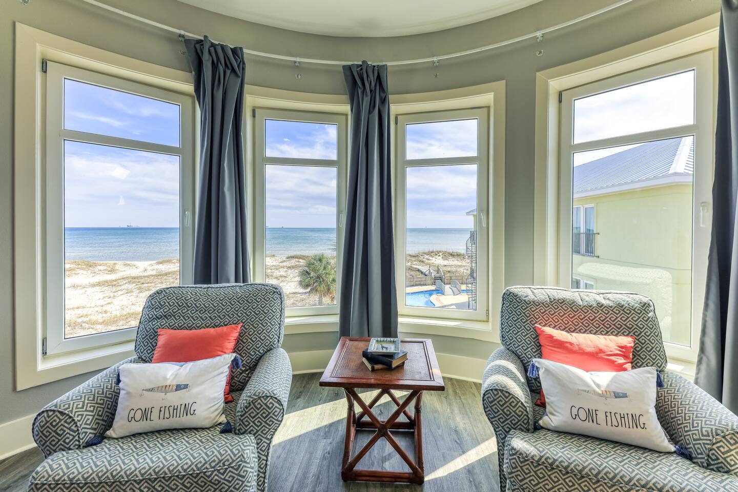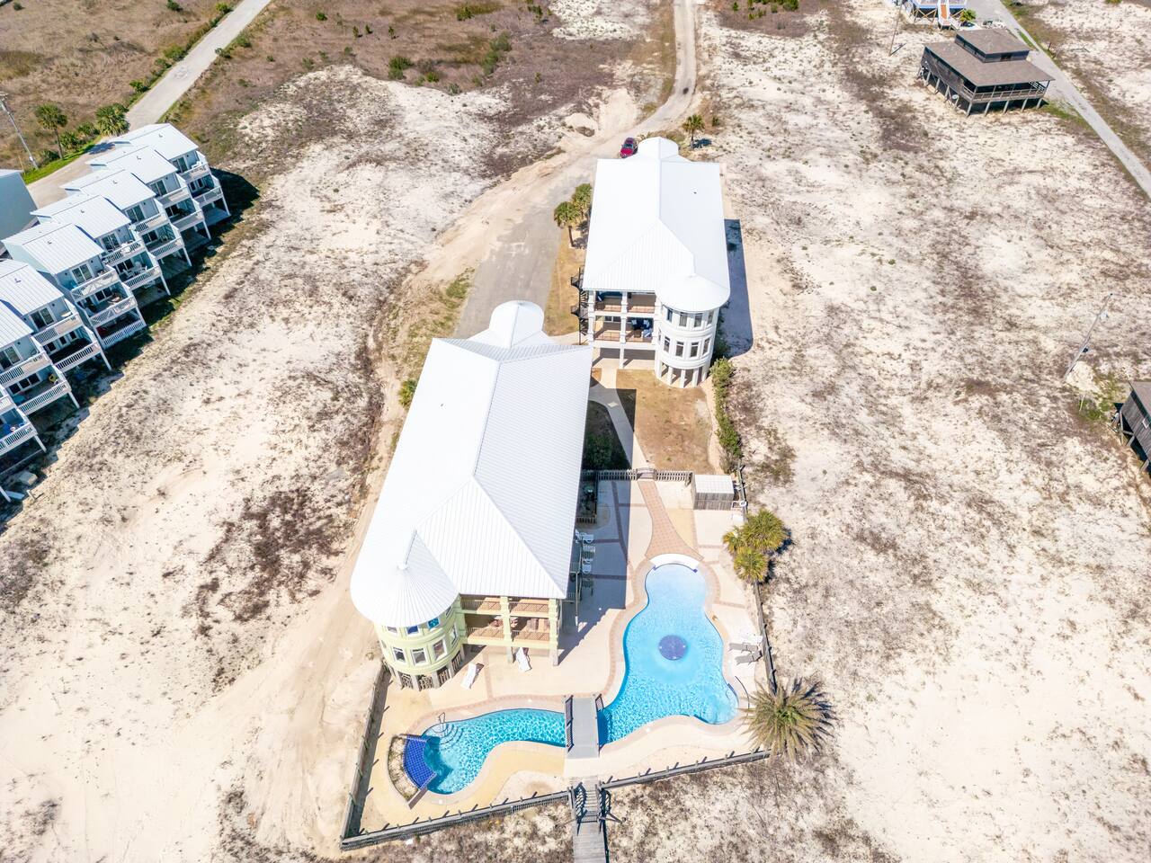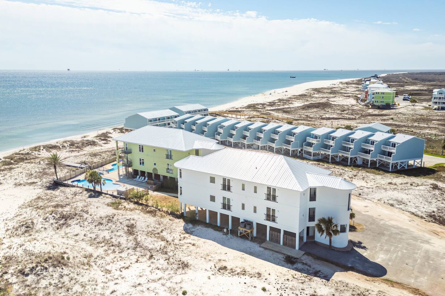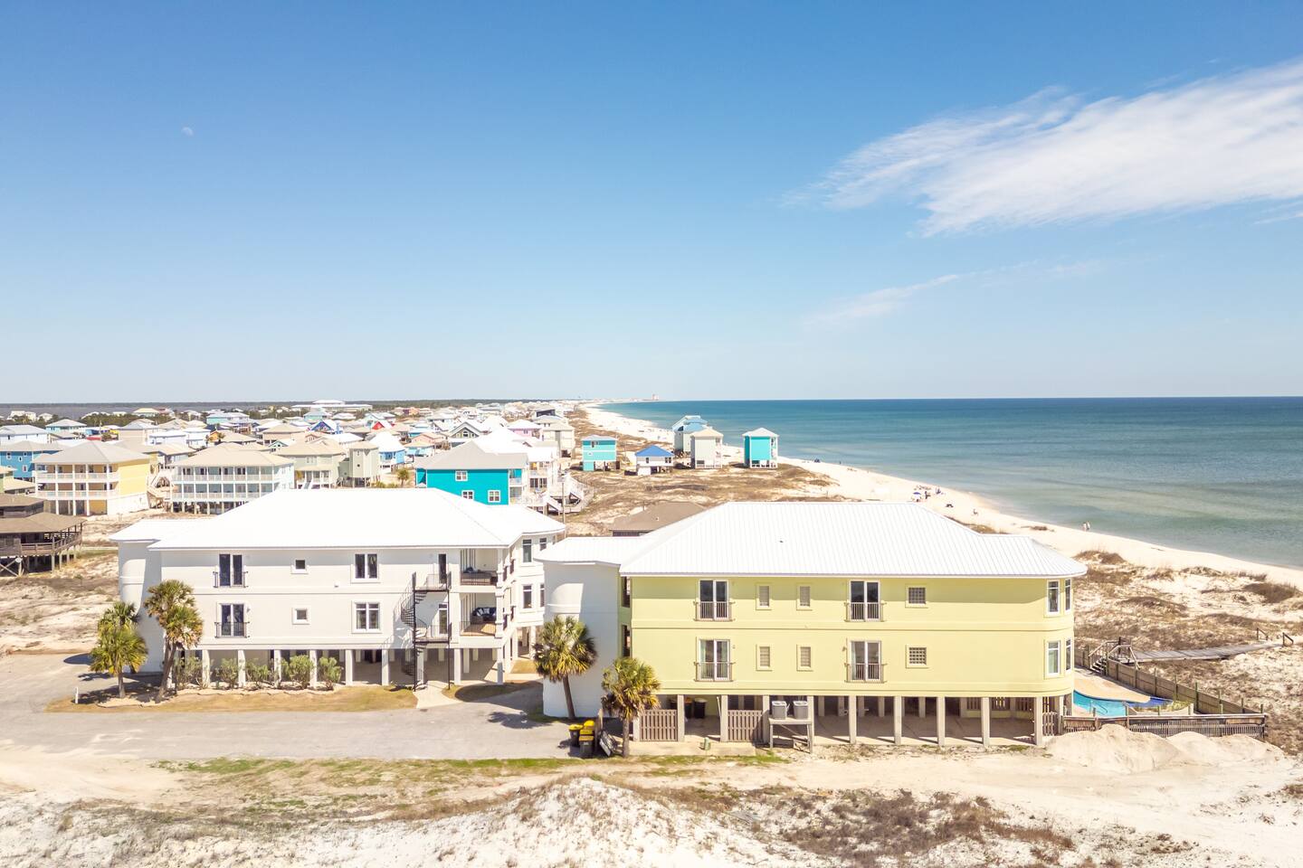 -THIS UNIT SHARES A POOL WITH 3 OTHER UNITS. -This is a custom home, elaborately detailed and decorated - very unique for a rental offering. It comfortably fits multiple families (Sleeps 20), and is situated near multiple amenities listed below! -The home is equipped with a spacious kitchen equipped with a combination coffee maker, 2 dishwashers, 2 large fridges, 2 ovens, one convection, microwave, air fryers, crockpots, 2 sets of washer & dryers, covered balconies, covered parking, wet bar, & much more! The home also includes a shared pool with the 3 other units at the property! We have high speed fiber internet with WIFI mesh systems throughout with Smart TV’s pre loaded with all your favorite streaming apps & Youtube TV as well! There is a shared propane grill at the bottom of the unit between both our units. It is rust resistant however the salt air destroys everything so while the outside may look great, the inside could have some rust. It is advisable to use aluminum foil when you place your food inside the grill! Each unit has their own grilling utensils as well! -If you are looking for a quiet, secluded place to enjoy the ocean and mother nature, this is it. There is Fort Morgan Marina where you can charter deep sea or inshore fishing trips and Tacky Jacks restaurant (.4 miles away), right across the street. Stop by the Sassy Bass Amazin' Grill (6 mins away) for some local Navy Cove oysters or one of their specialty drinks and a few other restaurants and stores close by. -The ferry to Dauphin Island is 4 minutes away from the property to visit the Sea Lab & runs multiple times daily (weather permitting). We will send the link to the schedule once the booking is complete! -Historic Fort Morgan is only 5 minutes away which has been around since 1834. We will send a link to it as well once the booking is confirmed! -For Golf, There are two courses nearby with several others within a 30 minutes range. Kiva Dunes (8 minutes away) & Peninsula Golf & Racquet (19 minutes, 27 hole course) are the most popular in the area! -If you want major outlet shopping or more night activity, Downtown Gulf Shores is 18 miles East. Although Downtown is 18 miles away, we want to be very clear and transparent that you will need to budget about 30 min driving there and back based on traffic and distance depending on the time of year. If you want to plan a trip to Foley which is further North, plan for a total of 45 min. Our home is in a great remote spot away from crowds so expect longer drive time. However, there are many restaurants now closer than downtown and several markets for basic food and pantry items. -Groceries - There is a Walmart 19 miles away for all your grocery and pick up needs as well! -There is high speed internet (1 Gig) with a WI-FI mesh system throughout as well as a printer for your use!
