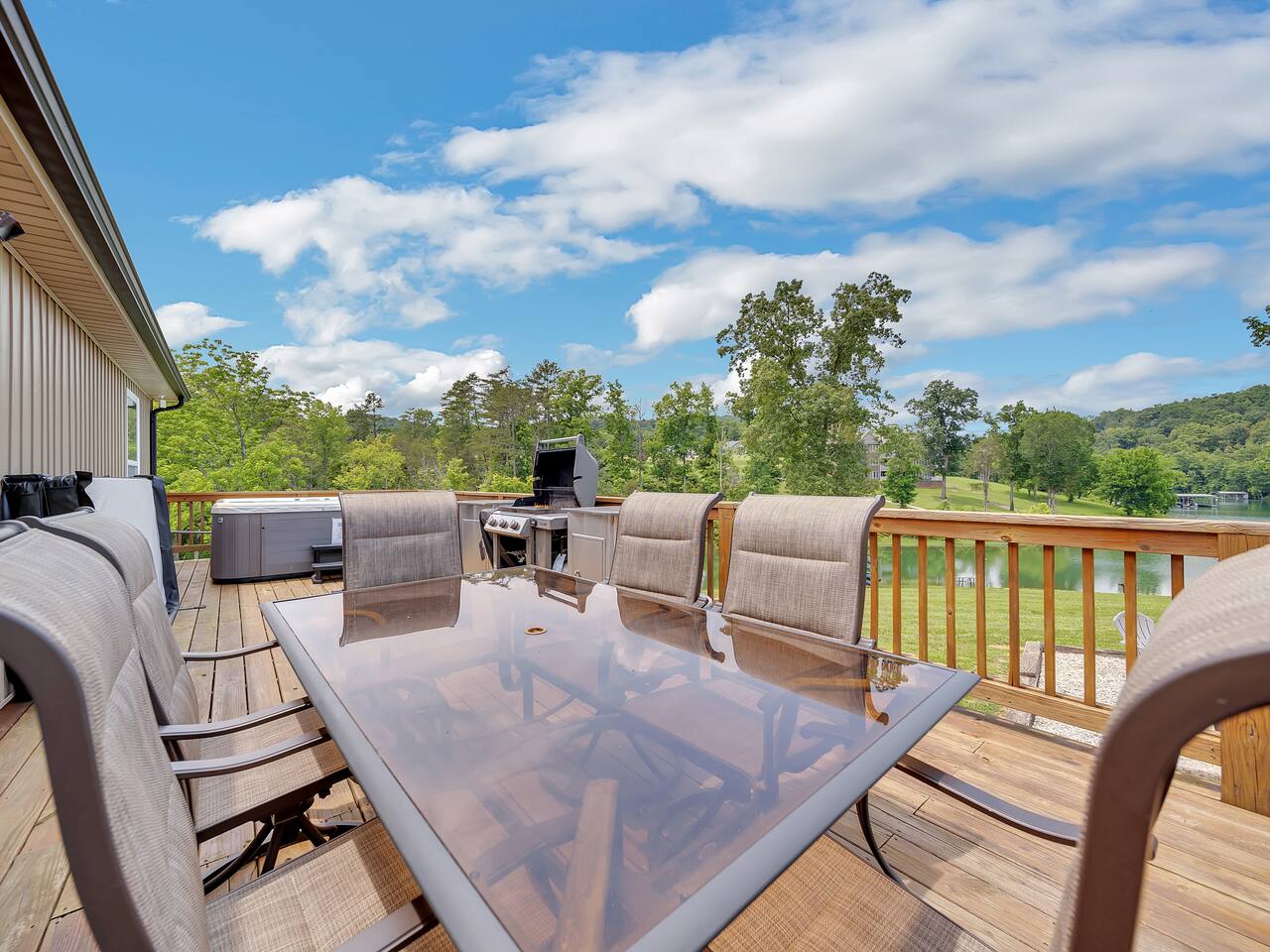 -We have multiple pontoon rentals available upon request. You must have a valid boaters license or be born before 1989 to operate. Please note we deliver the boat to the property & the boat can be taken out anytime during your stay, just note per our insurance, the boats are not to be taken out after dark. All Bookings must be made a week in advance to guarantee delivery. All boats must be returned with a full tank of gas to avoid additional charges. Please note we do not rent tubes but local marinas do & the boat is to be returned to the house after the rental period is over. Rates are as follows: Pontoon rental - $325 per day plus taxes & $50 insurance & taxes. -There are also kayaks included with the rental close to the dock. Please note that we do not provide life jackets. Please be sure to return to the kayak rack at the property once finished! -The home is located at the end of Dodson Creek Cove right past Bubba Brews & Beach Island Marina on Hickory Valley Rd! -The home is equipped with a gallery style kitchen equipped with a standard coffee maker, dishwasher, large fridge, stove, over the range microwave, & a kitchen table! The home also includes a hot tub, weber gas grill with propane on site that we provide, KUB Fiber WIFI, & Samsung Smart TV’s throughout the entire house as well as a beautiful patio area! -There is a shared dock with our other houses there for use w/ a swim ladder! One boat is allowed per house. Our pontoon rental stays in the third slip! Your trailer can be left at the property & you can put in at Beach Island Marina (5 mins away)! The dock does not have power currently. -Please note, this part of the lake is considered seasonal water and although you'll have normal lake levels from May to later September. The lake levels are lowered by the TVA in the Fall and raised again in the Spring & can fluctuate year to year.