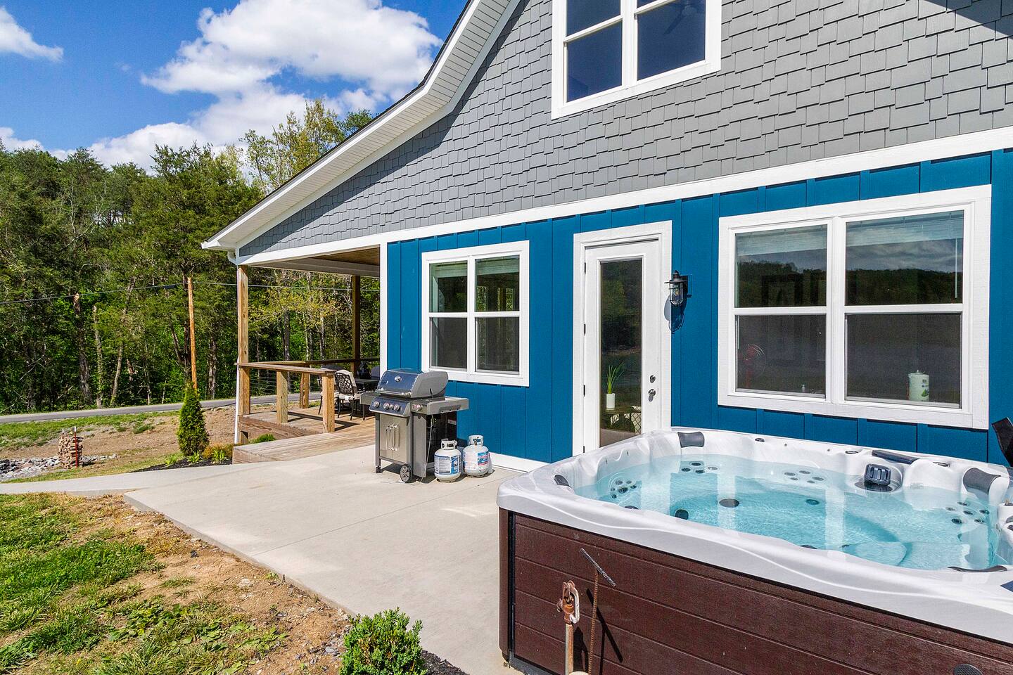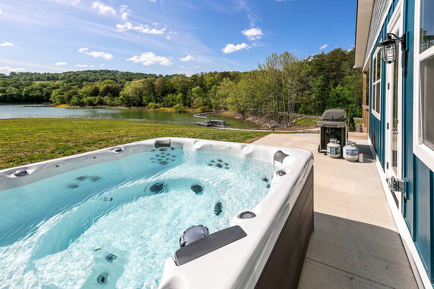 -We have multiple pontoon rentals available upon request. You must have a valid boaters license or be born before 1989 to operate. Please note we deliver the boat to the property & the boat can be taken out anytime during your stay, just note per our insurance, the boats are not to be taken out after dark. All Bookings must be made a week in advance to guarantee delivery. All boats must be returned with a full tank of gas to avoid additional charges. Please note we do not rent tubes but local marinas do & the boat is to be returned to the house after the rental period is over. Rates are as follows: Pontoon rental - $325 per day plus taxes & $50 insurance & taxes. -There are also kayaks included with the rental close to the dock. Please note that we do not provide life jackets. Please be sure to return to the kayak rack at the property once finished! -The home is located on Summer Breeze on a peaceful cove right behind Straight Creek Boat Dock in a long no wake zone that takes roughly 15-20 minutes to get out of to the main channel of the lake. Jimmy's place & Bubba Brews is about 15 minutes away by land & roughly 20-30 minutes away by water. -The home is equipped with a spacious kitchen equipped with a standard coffee maker, dishwasher, large fridge, stove, over the range microwave, & a large kitchen table! The home also includes a hot tub, weber gas grill with propane on site that we provide, Fiber WIFI, & Samsung smart tv's throughout the entire house as well as a beautiful patio area! -There is a private dock for use w/ a swim ladder! Your trailer can be left at the property (just please note the road is tight in areas) & you can put in at Straight creek boat dock! The dock does not have power currently -Please note, this part of the lake is considered seasonal water and although you'll have normal lake levels from May to mid August for the dock, past that it will not be floating. The lake levels are lowered by the TVA in the Fall and raised again in the Spring & can fluctuate year to year.